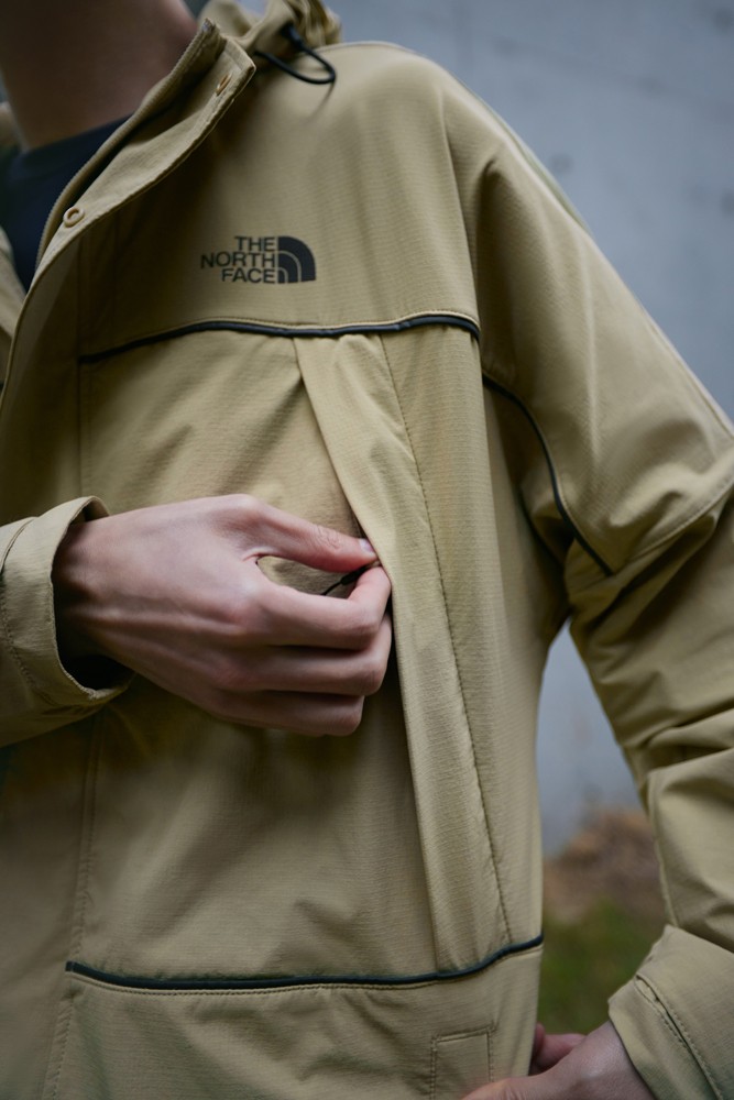 冲锋衣承袭 The North Face 经典版型,采用防水、排湿、耐磨三合一的全压胶外壳 DRYVENT 面料,并在正面增设多重口袋设计。