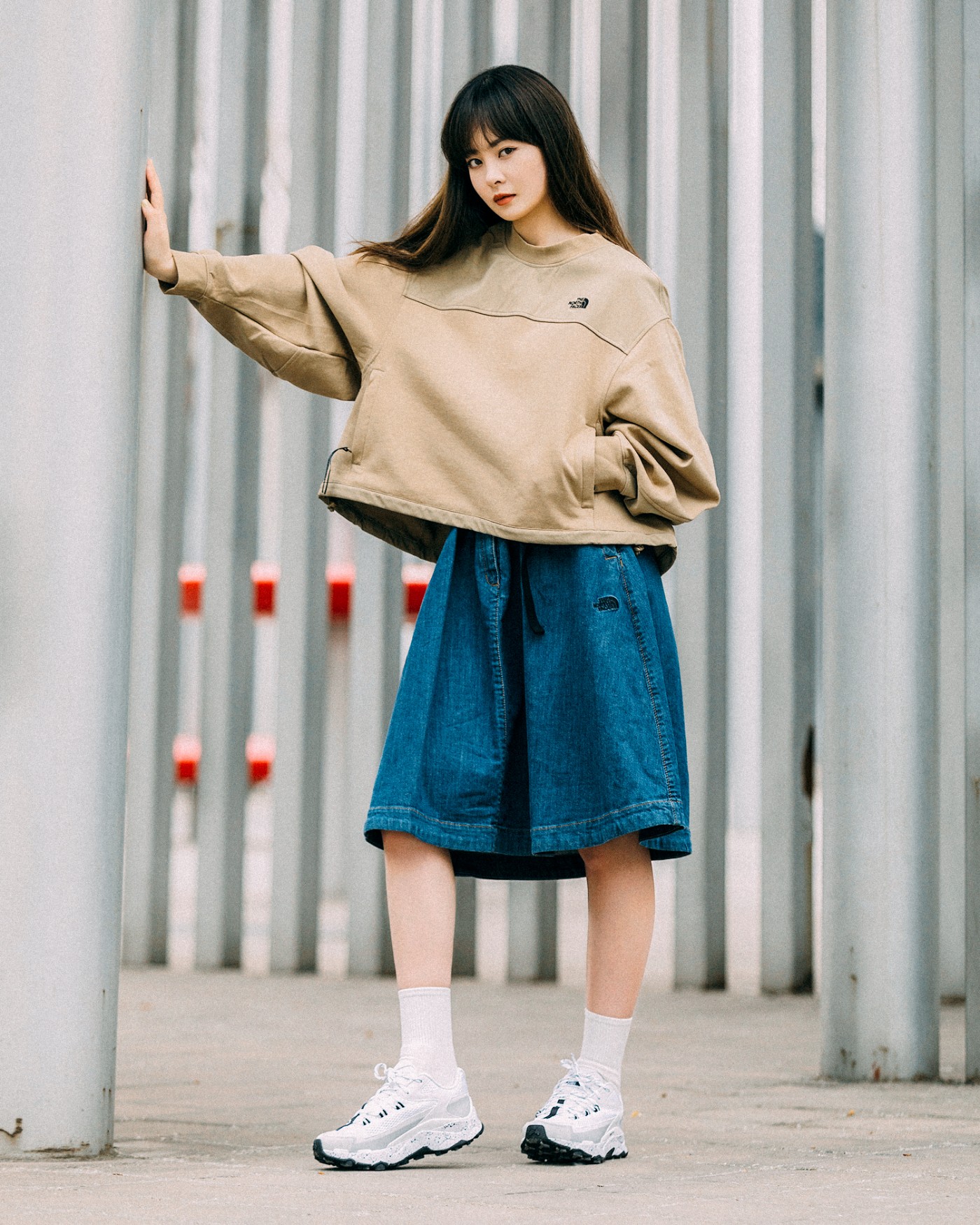 牛仔裙方面,擅长使用功能性面料的 The North Face 采用弹力牛仔材质,舒适度远高于普通牛仔。