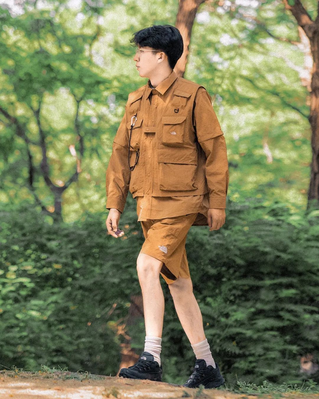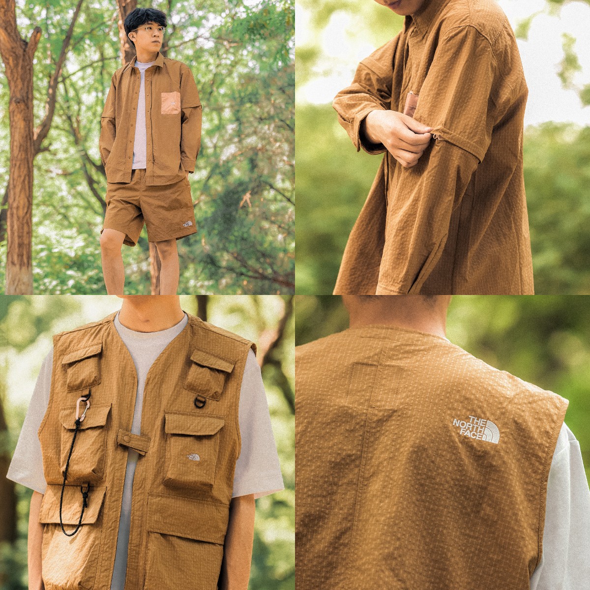 衬衫和短裤均采用 DWR 防泼水科技和 WINDWALL 的功能性面料,轻薄舒适不失质感,夏天穿着也不会很热。