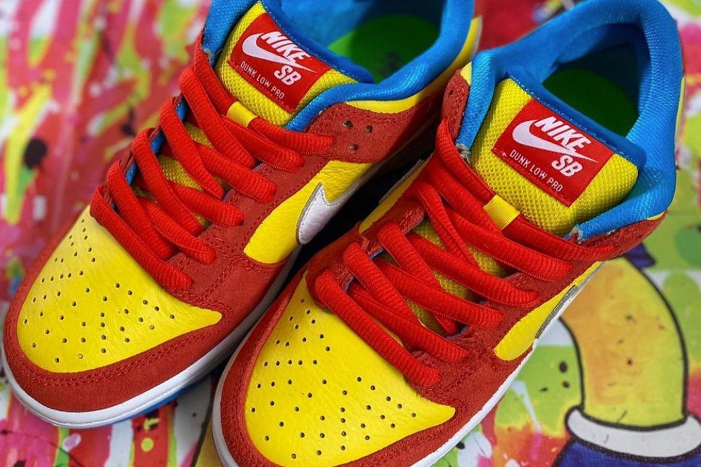 鞋面采用红色麂皮搭配黄色皮革打造,再配上蓝色的外底和内衬,真的和动画角色 Bart Simpson 非常相似。