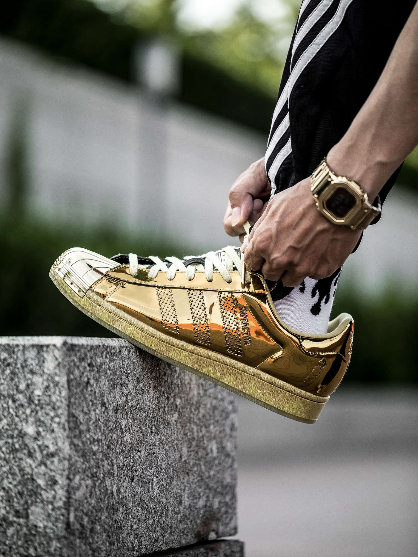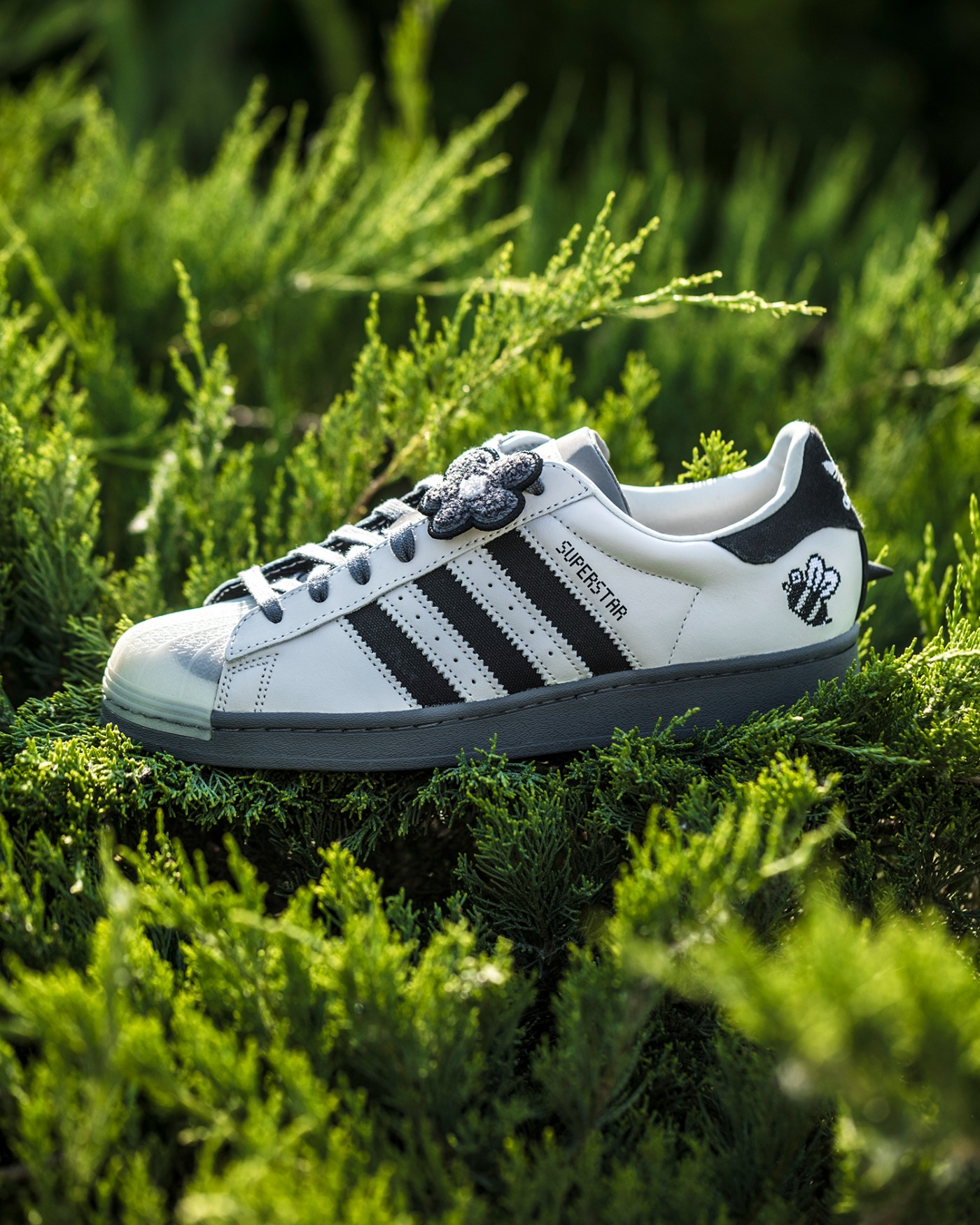 第四双 Superstar,其实是源于去年 2 月登场的情人节主题款「BEE WITH ME」( 谐音“和我在一起”)。