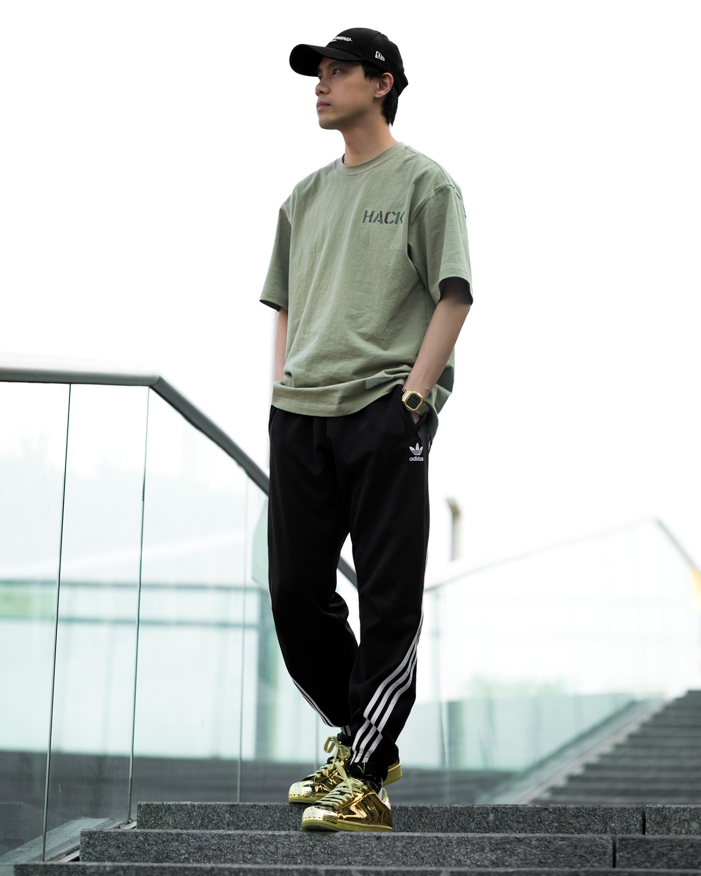 鞋子作为整身最吸睛的单品,在服饰的选择上,一件不抢戏同时有质感的 T 恤就十分合适。