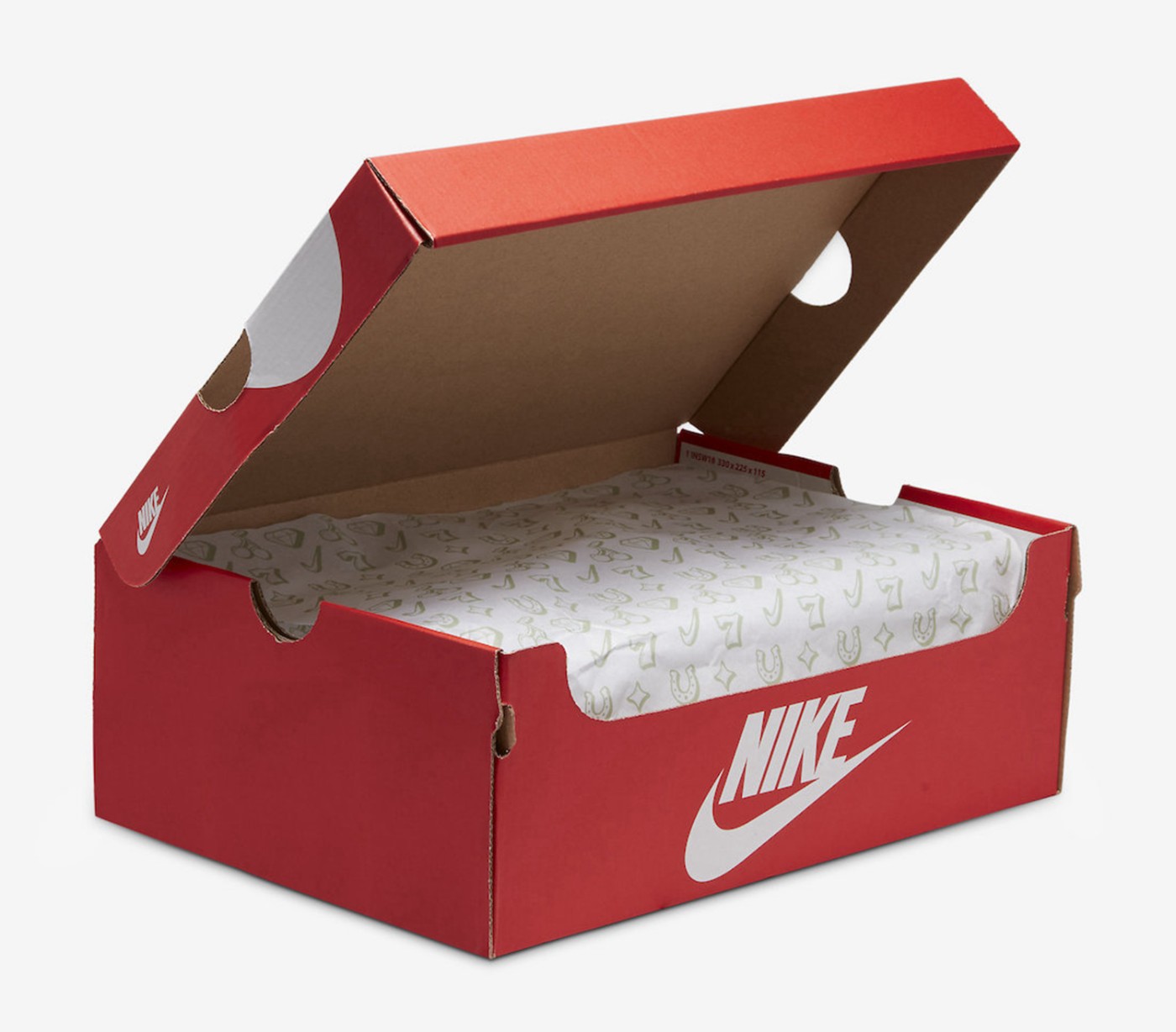 鞋身以略微泛黄的白色为主调,鞋身框架辅以绿色覆盖,同时点缀黑色的 Swoosh Logo。