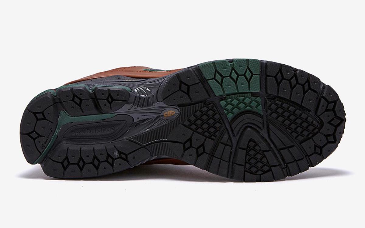 鞋面在传统设计基础上,增加了皮革部分面积,并且采用类似靴款的光面皮革打造。