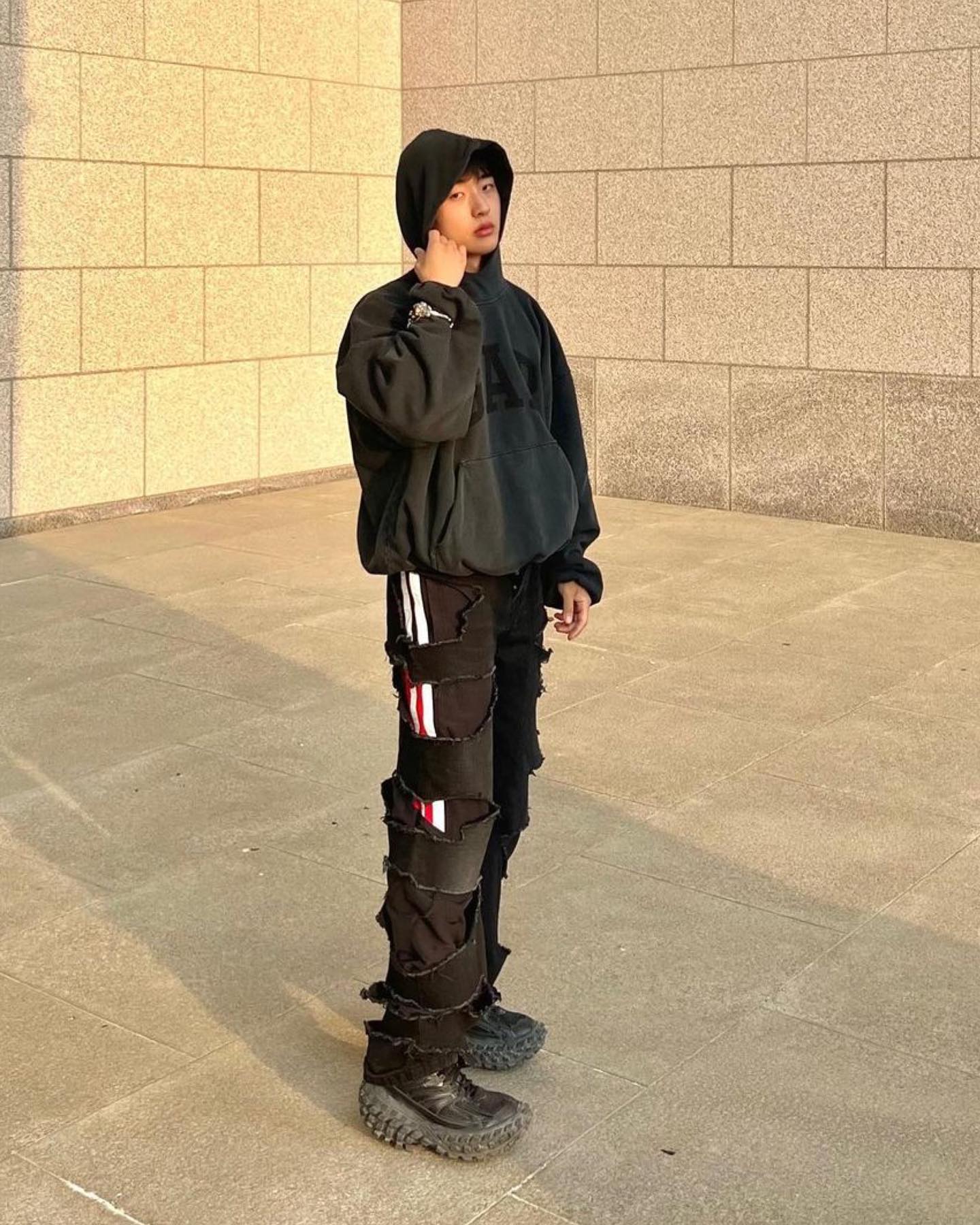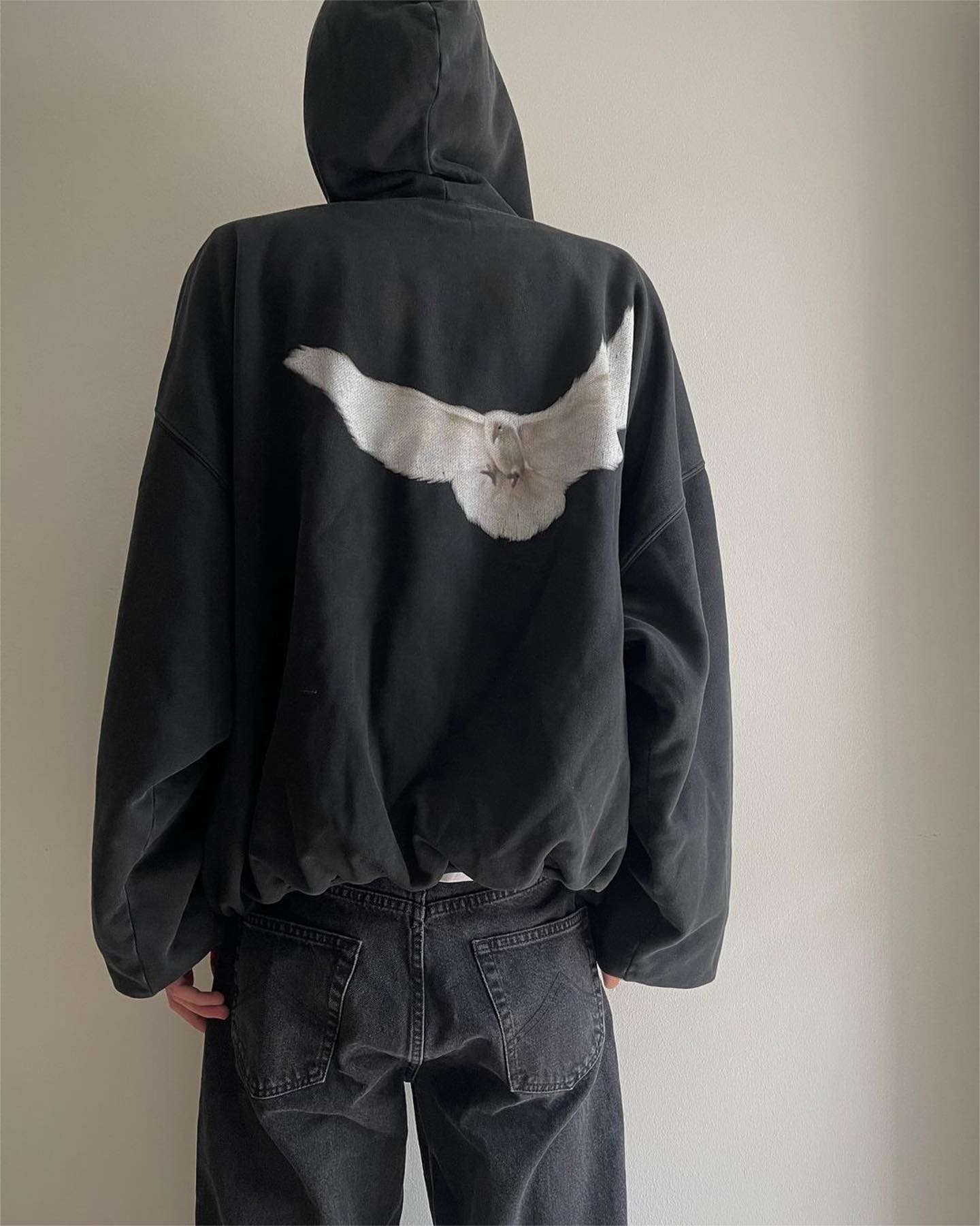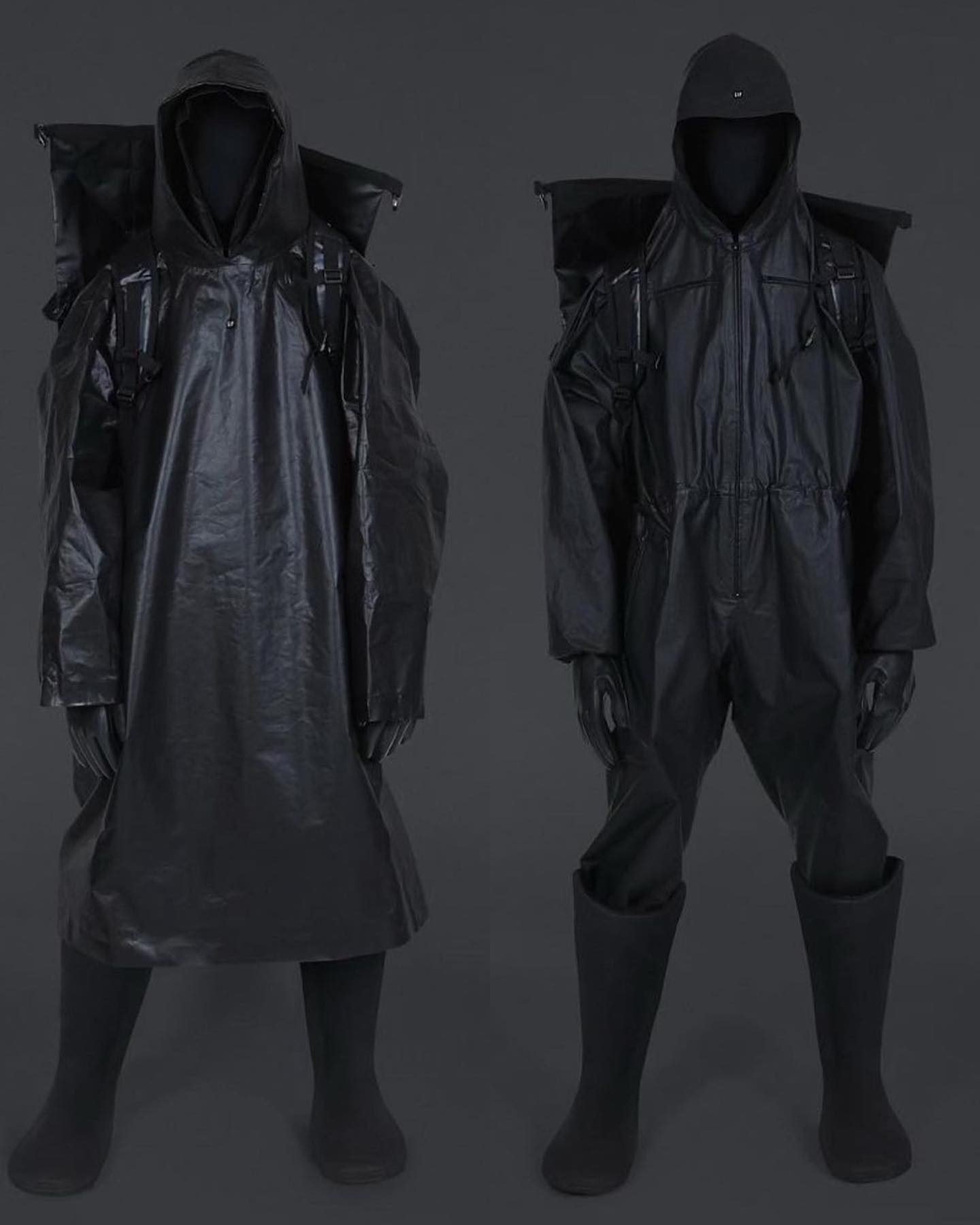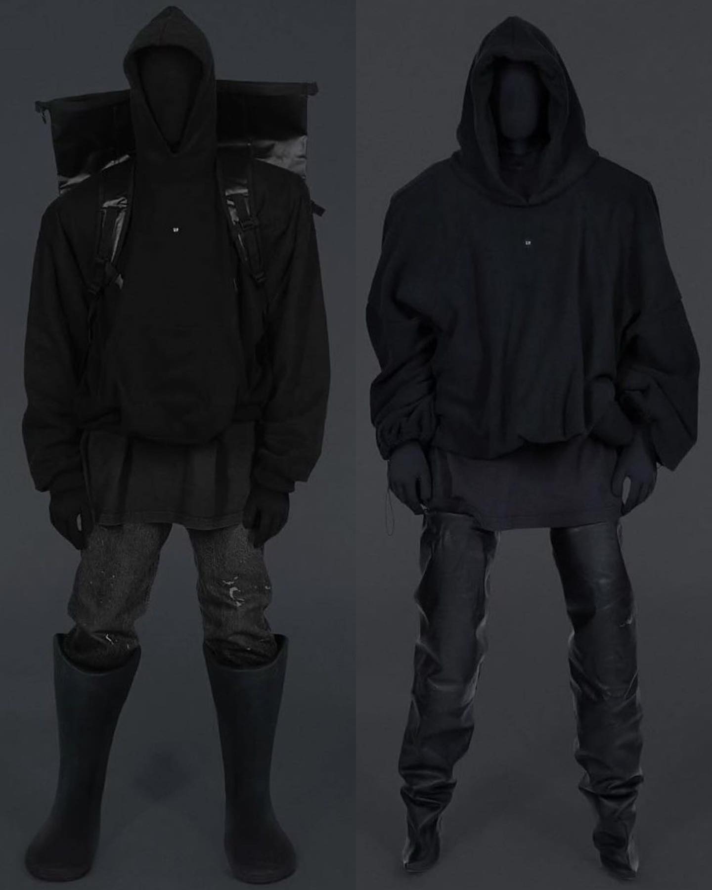 酷黑色系、水洗、Oversize 廓形剪裁,依旧是侃爷强烈的个人风格。
