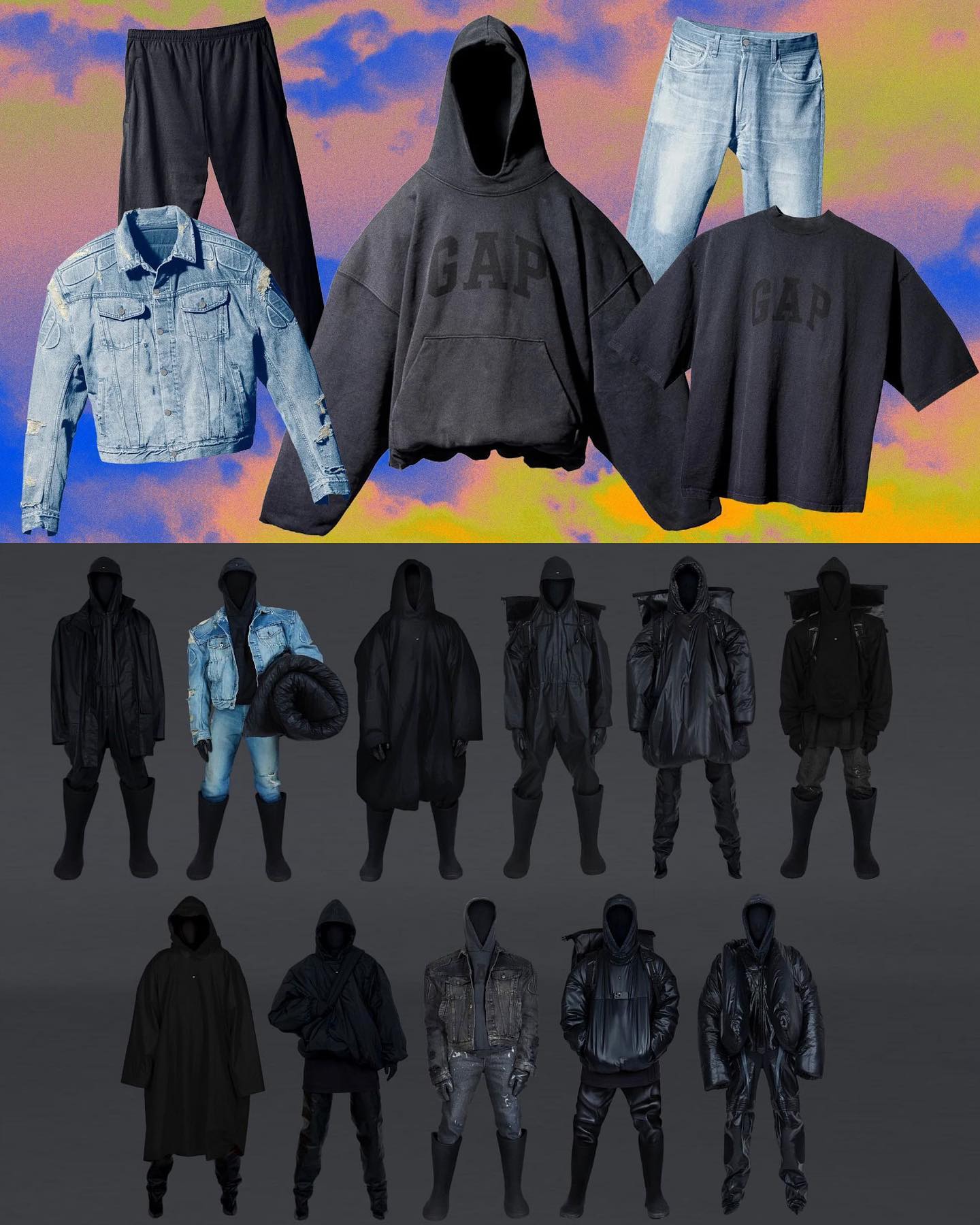 根据 YZY x GAP 官方消息,此次登场的新品包括但不限于 T 恤、帽子、外套、上衣、裤子以及配饰等。