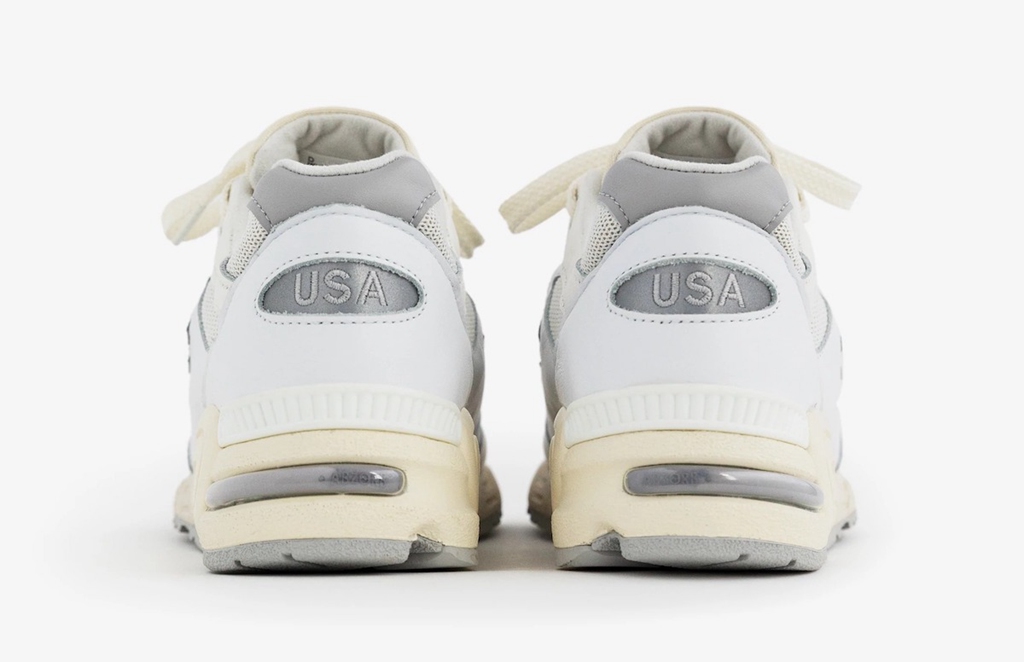 这双全新 990v2 鞋面采用的白色网眼织物、白色光面皮和灰色麂皮材质打造,还是 New Balance 一贯的复古、质感路线。