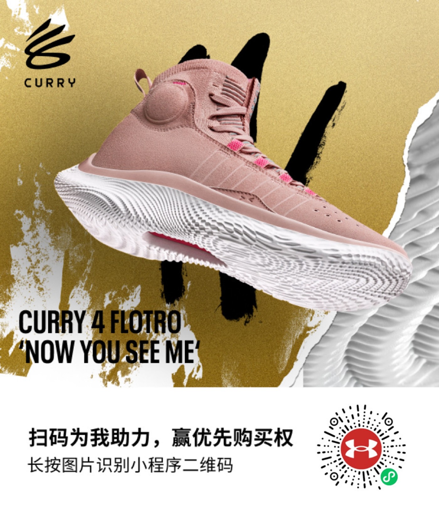 最后是大家关心的入手信息,目前全新 Under Armour Curry 4 Flotro 粉色款式将在 Under Armour 官方商城微信小程序开启抢先购买活动。