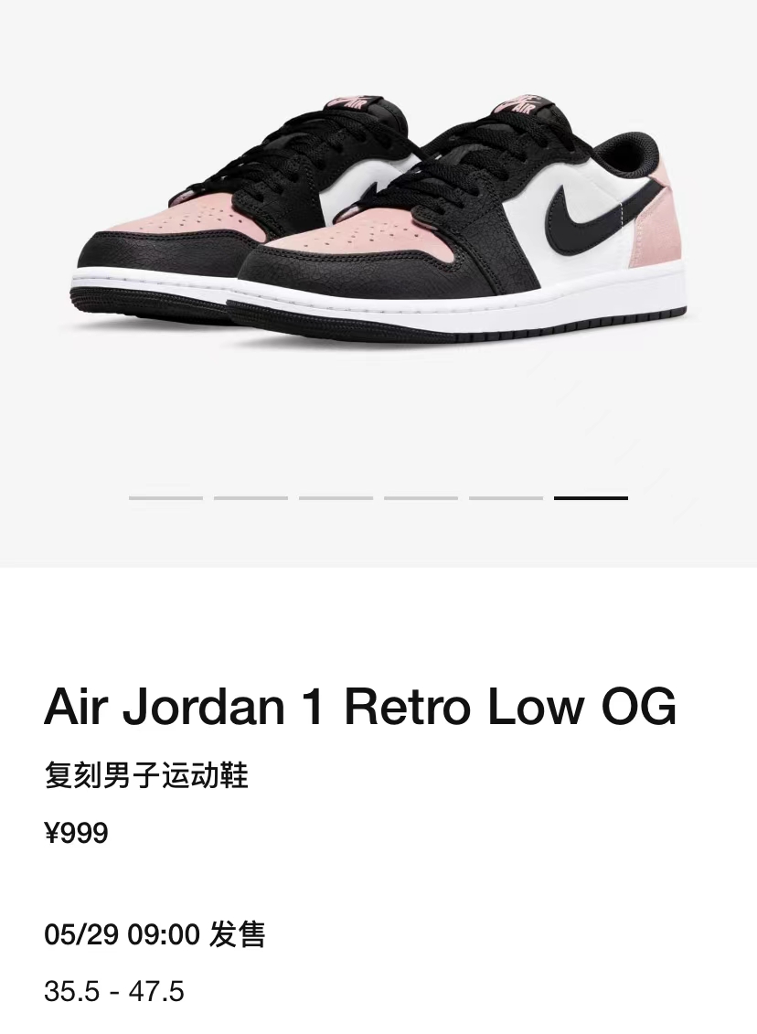 国区 SNKRS APP 目前已经正式上架,将于 5 月 29 日早上 9 点以 LEO 模式抽签发售,发售价格¥999 元。