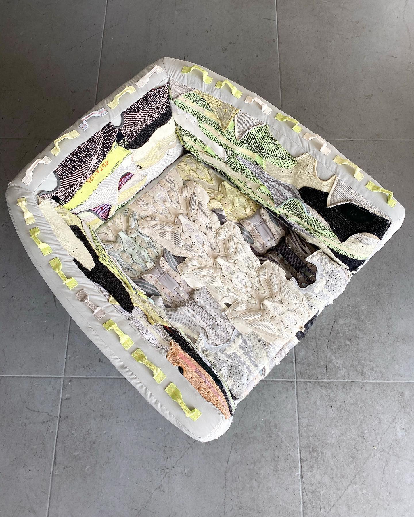 用了 65 只 Yeezy,打造了一张「Yeezy 沙发」。