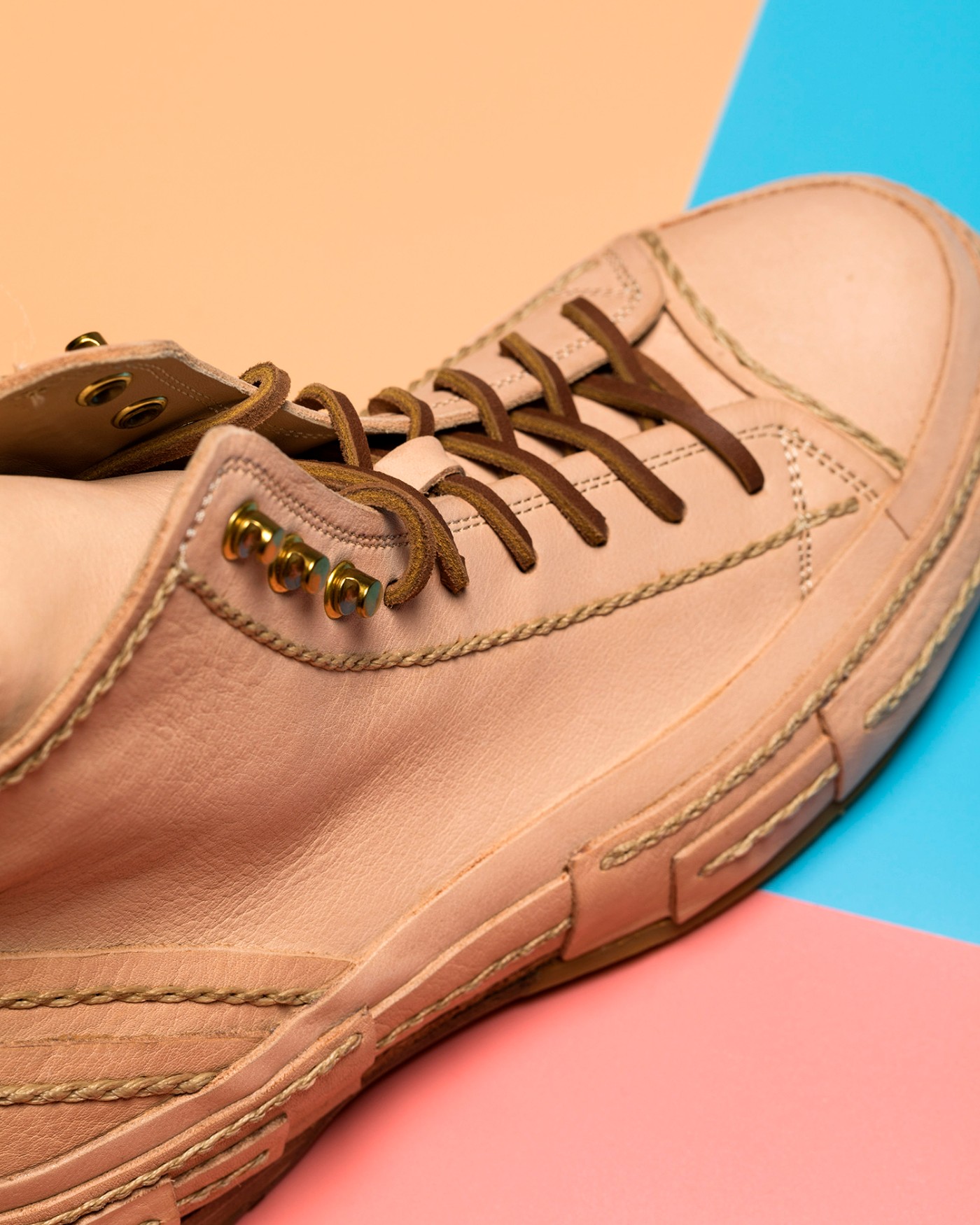 从覆盖整双鞋的植鞣革就能看出,绝对把规格拉满了,甚至连鞋带都是由优质牛皮打造。