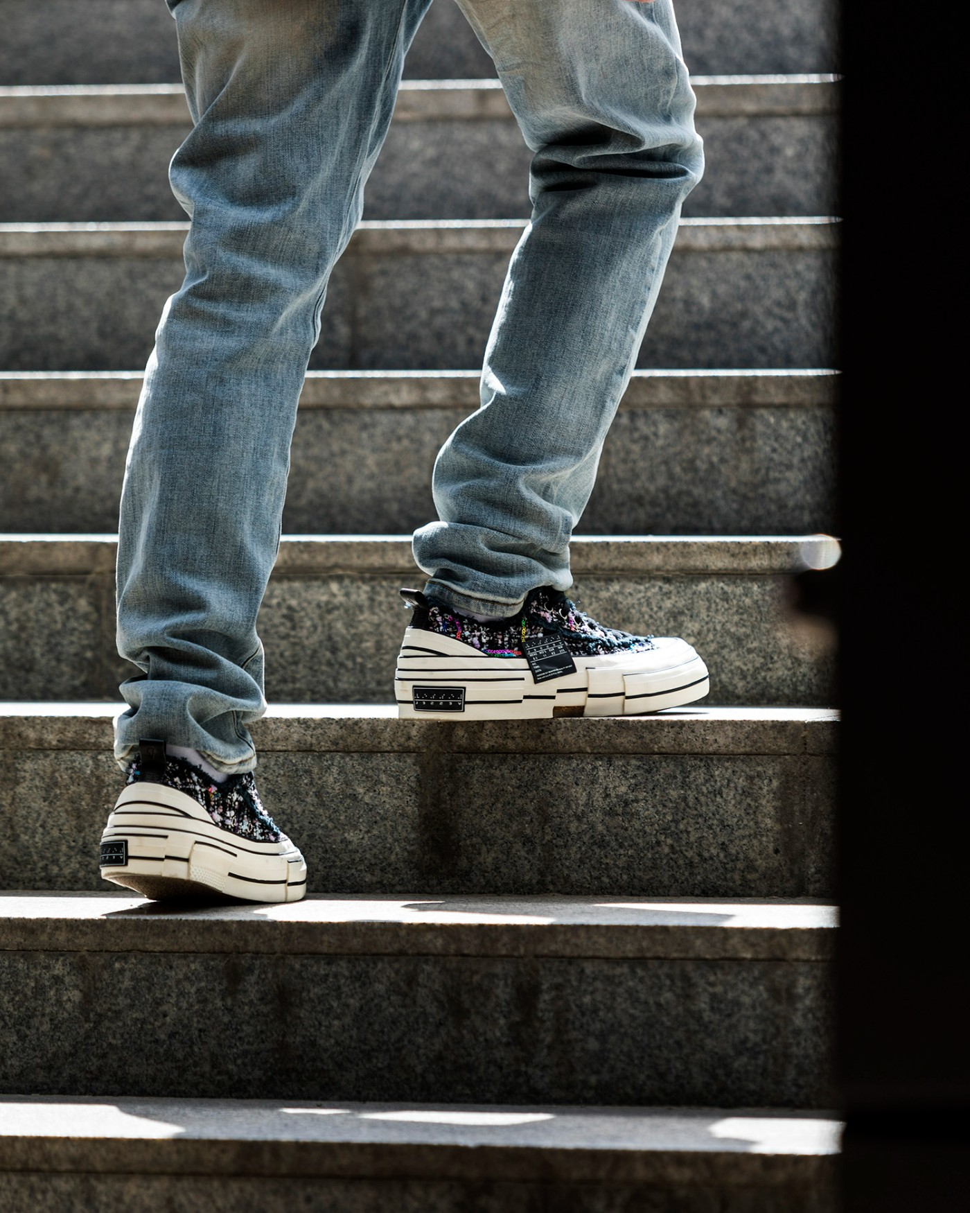 和上一双相比,这双明显更符合 “溶解鞋” 的概念,上脚后也别有一番风味。