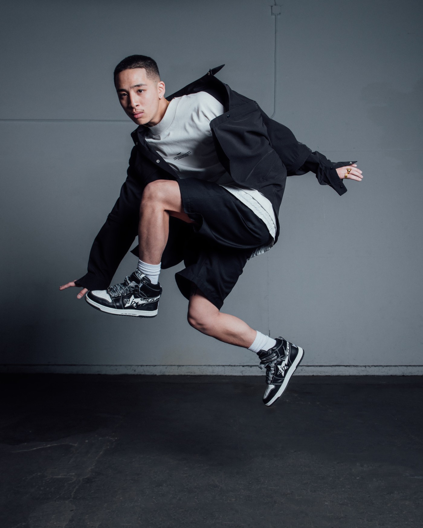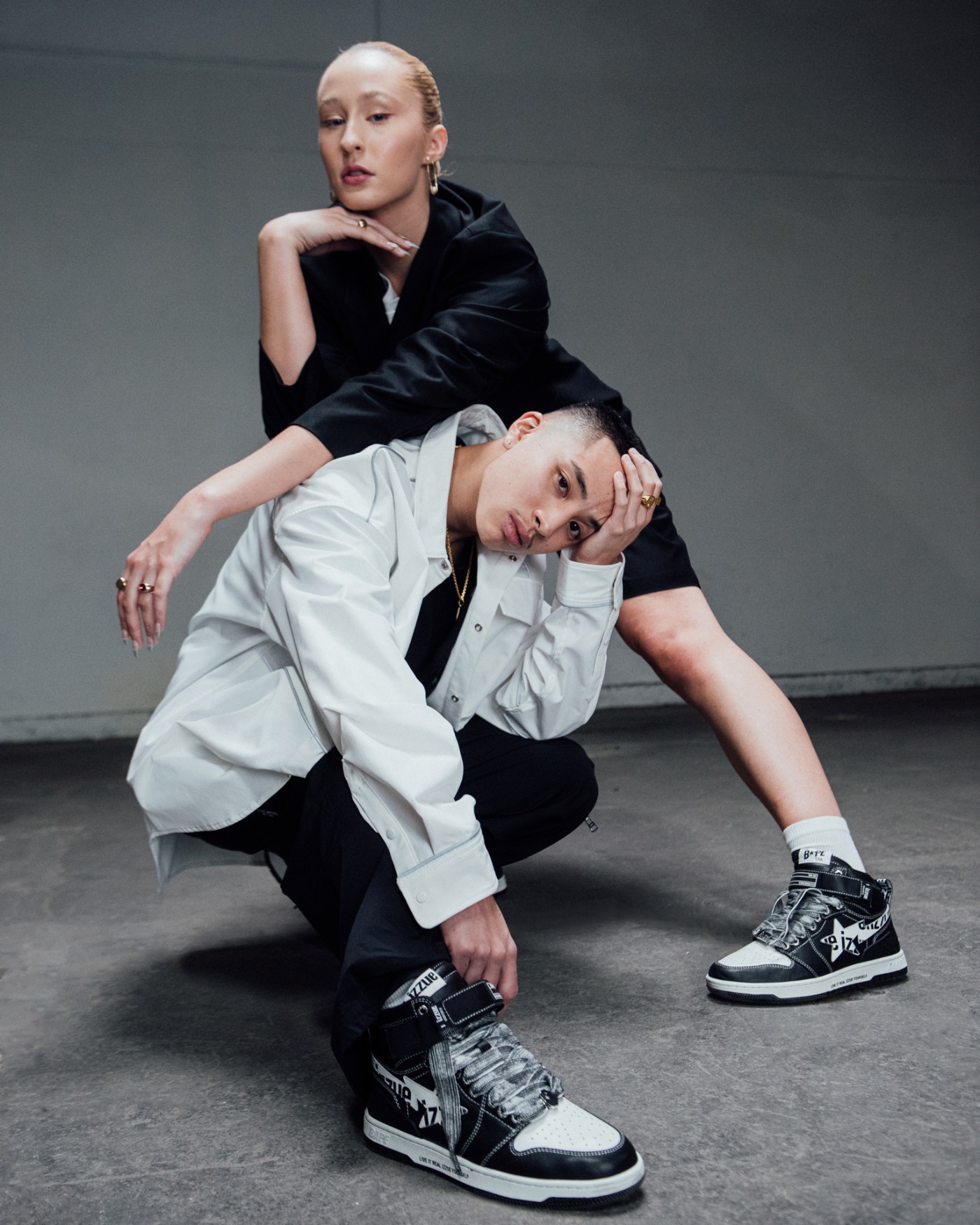 以 BAPE® 旗下标志性鞋款 BAPE STA™ MI 为蓝本,选用最为经典的黑白色调。