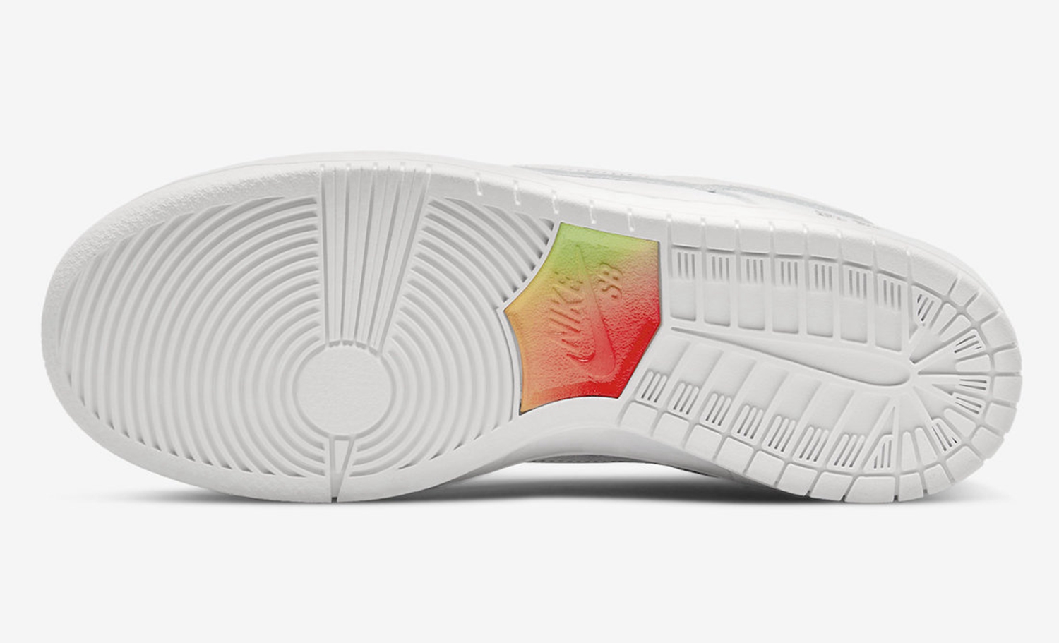 鞋面以白色皮革材质覆盖,将标志性彩虹色点缀在鞋舌标签及鞋带,营造甜美氛围。