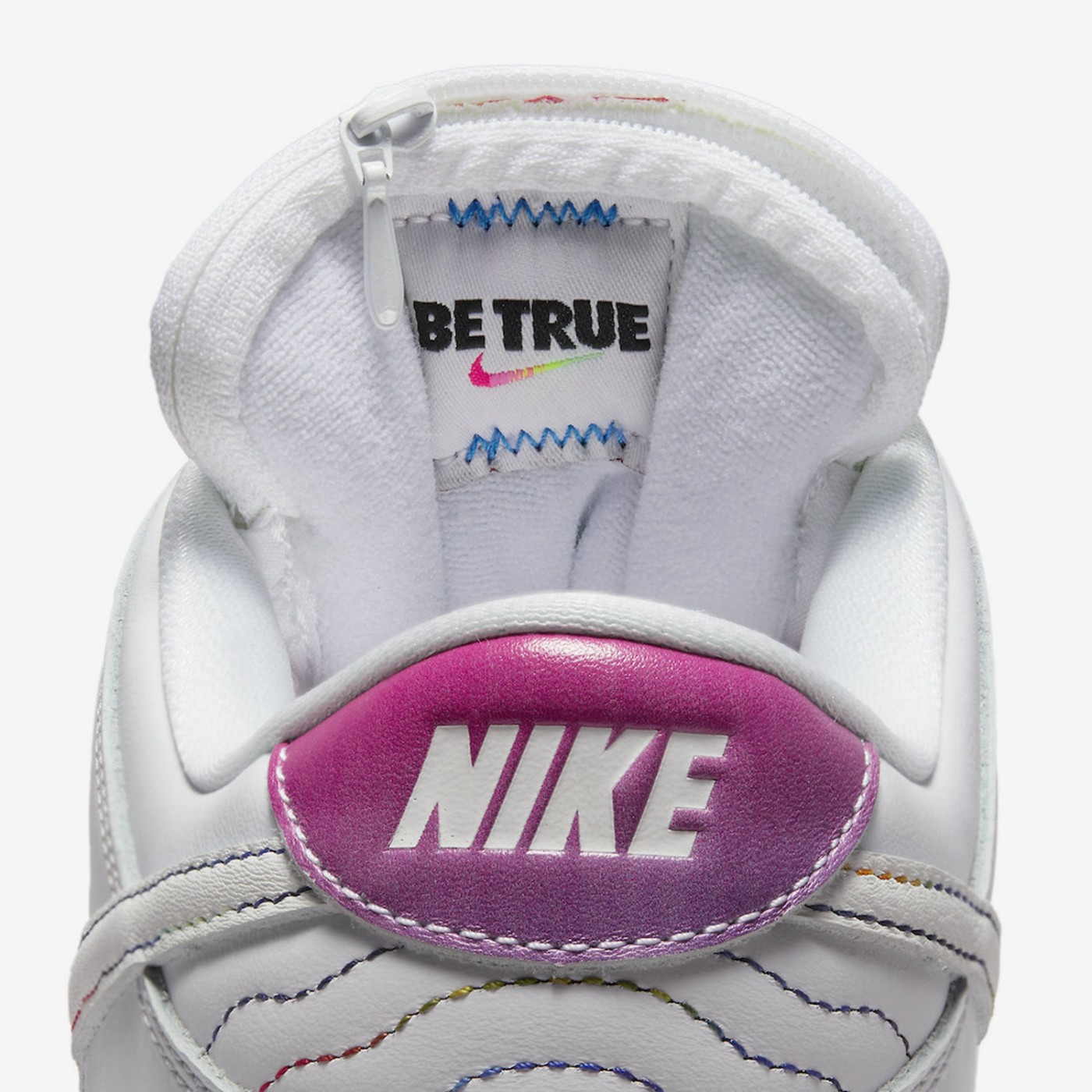 近日,此前曝光过的 Nike SB Dunk Low “Be True” 终于在近期释出了官图,并首次说明了鞋面的特殊玩法。