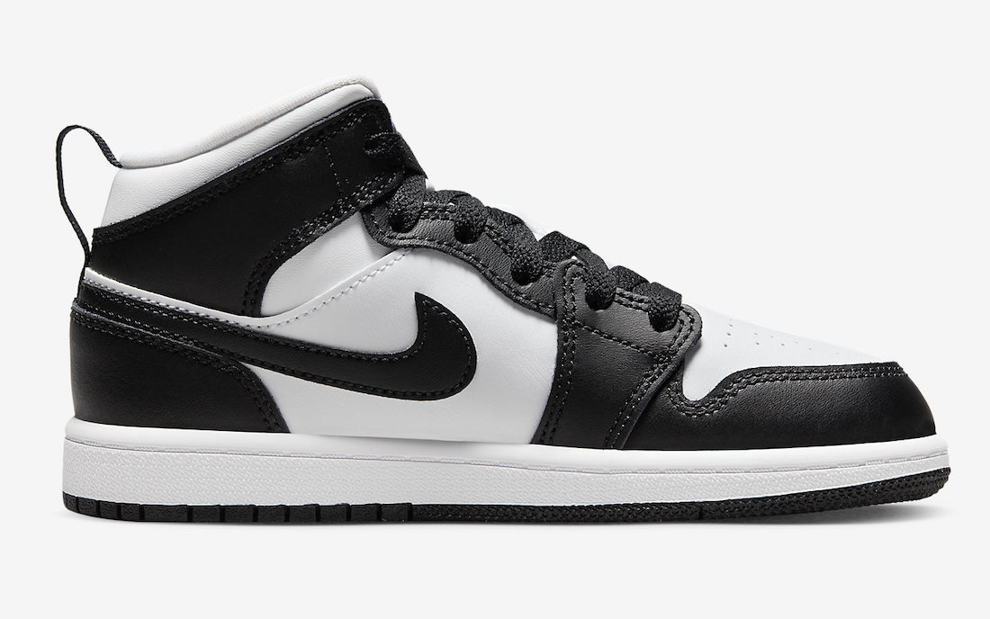 可以看出整双鞋在 Air Jordan 1 Mid 的鞋型基础上,采用黑色打造鞋身轮廓,辅以白色填充鞋面,营造出类似「熊猫」配色的既视感。