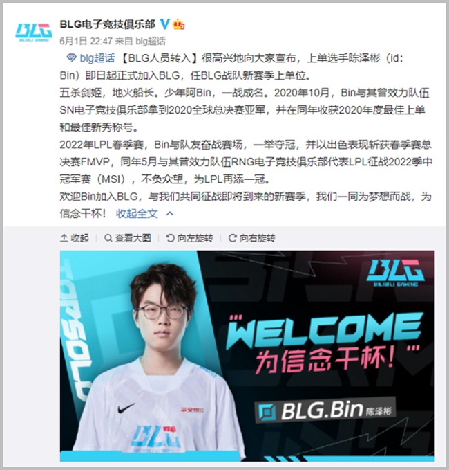 总之,目前 Bin 哥离队,与呼吸哥上单互换已成事实,我们也祝愿两位选手都能在各自队伍有所突破,成就更好的自己。