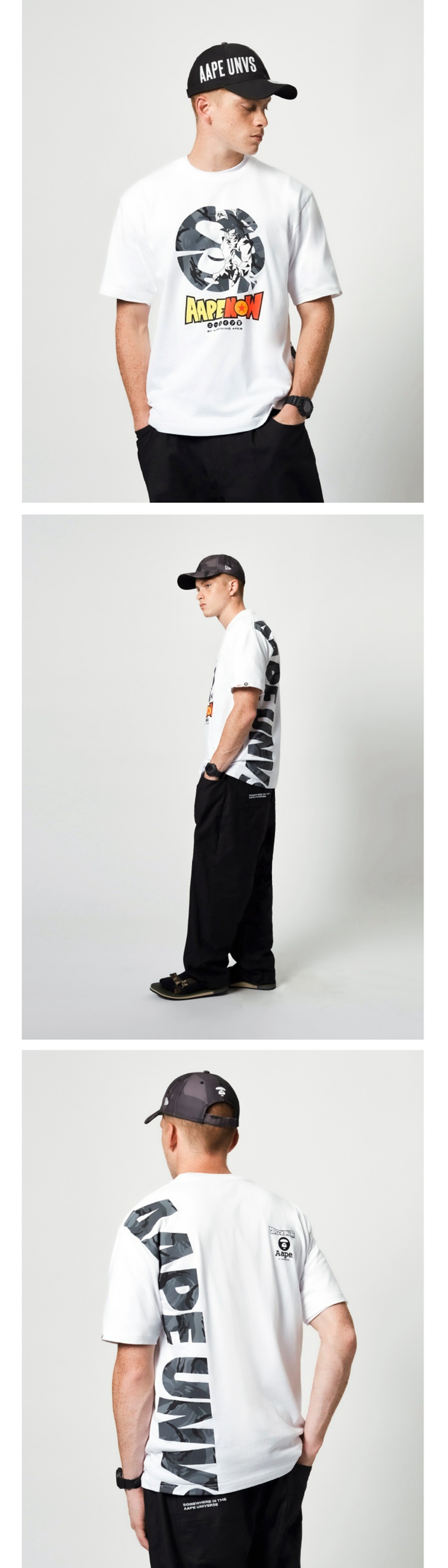 印花上将 AAPE 字样融入龙珠标题之中,并结合每一位角色,彰显联名身份的同时 “中二感” 拉满。