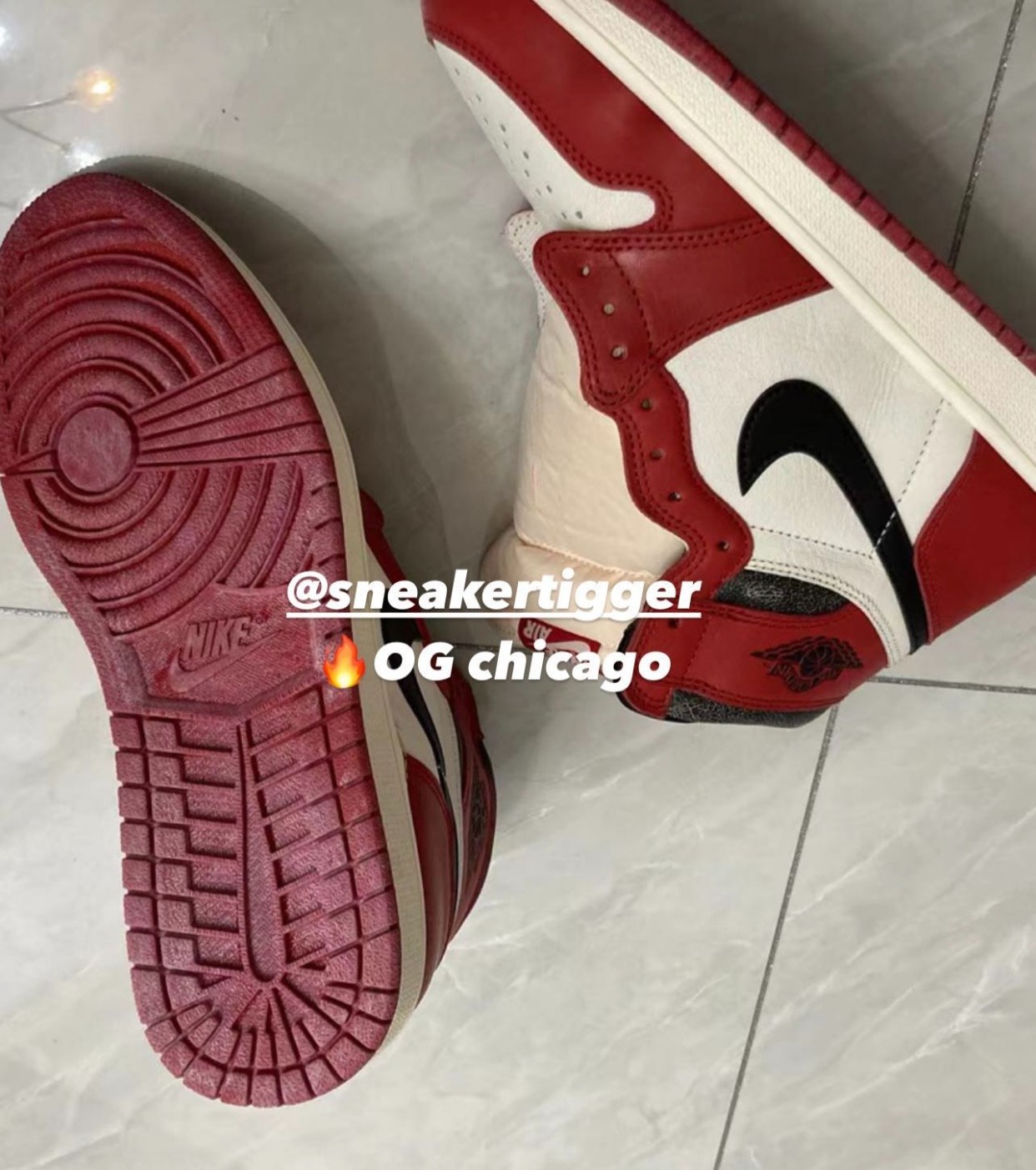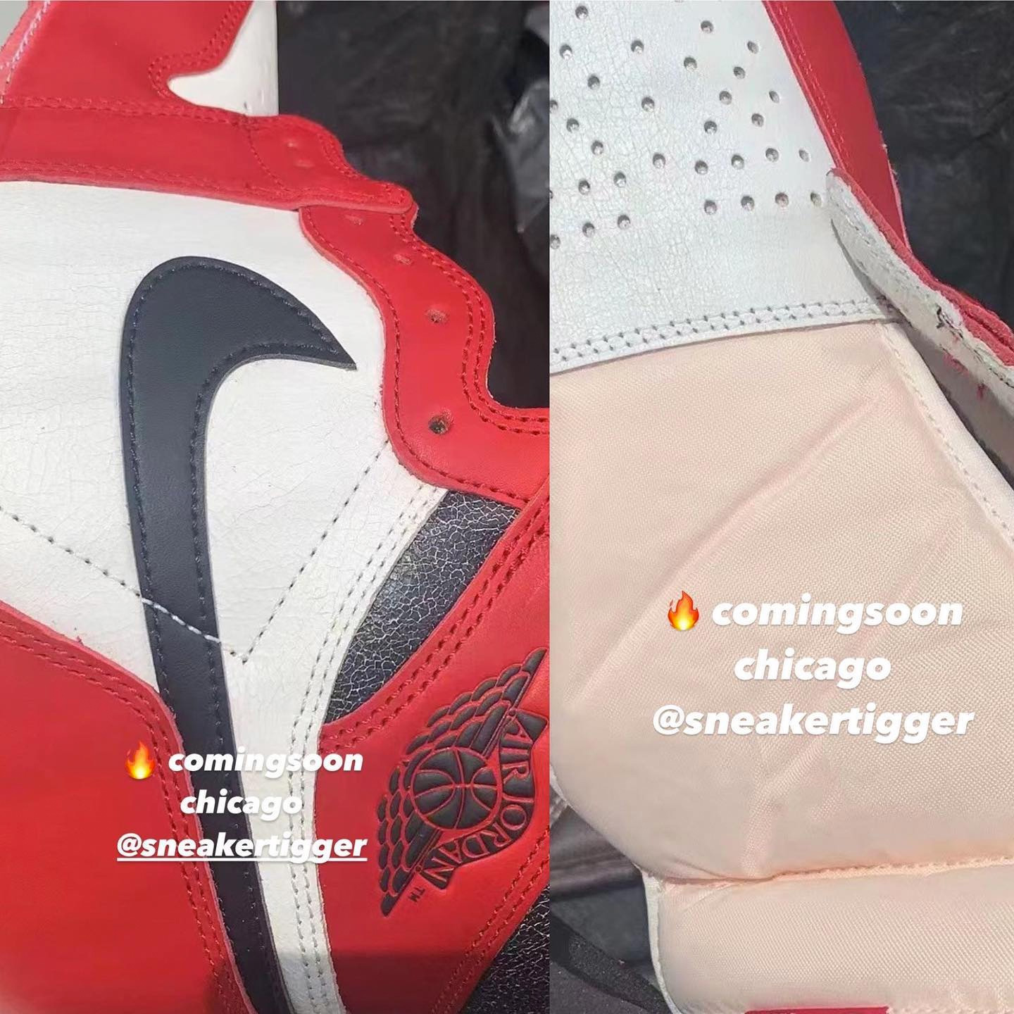 可以看出鞋面的皮革与一般的 Air Jordan 1 OG 不同。