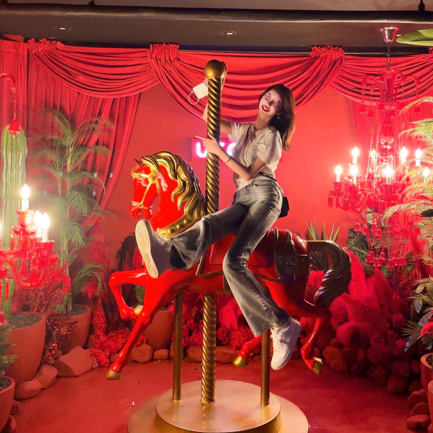 说完 Dara,再来看看这位小姐姐,在范思哲的联名酒吧中还不忘秀一波 Nike「火星鞋」,看来也是个不折不扣的女鞋头。