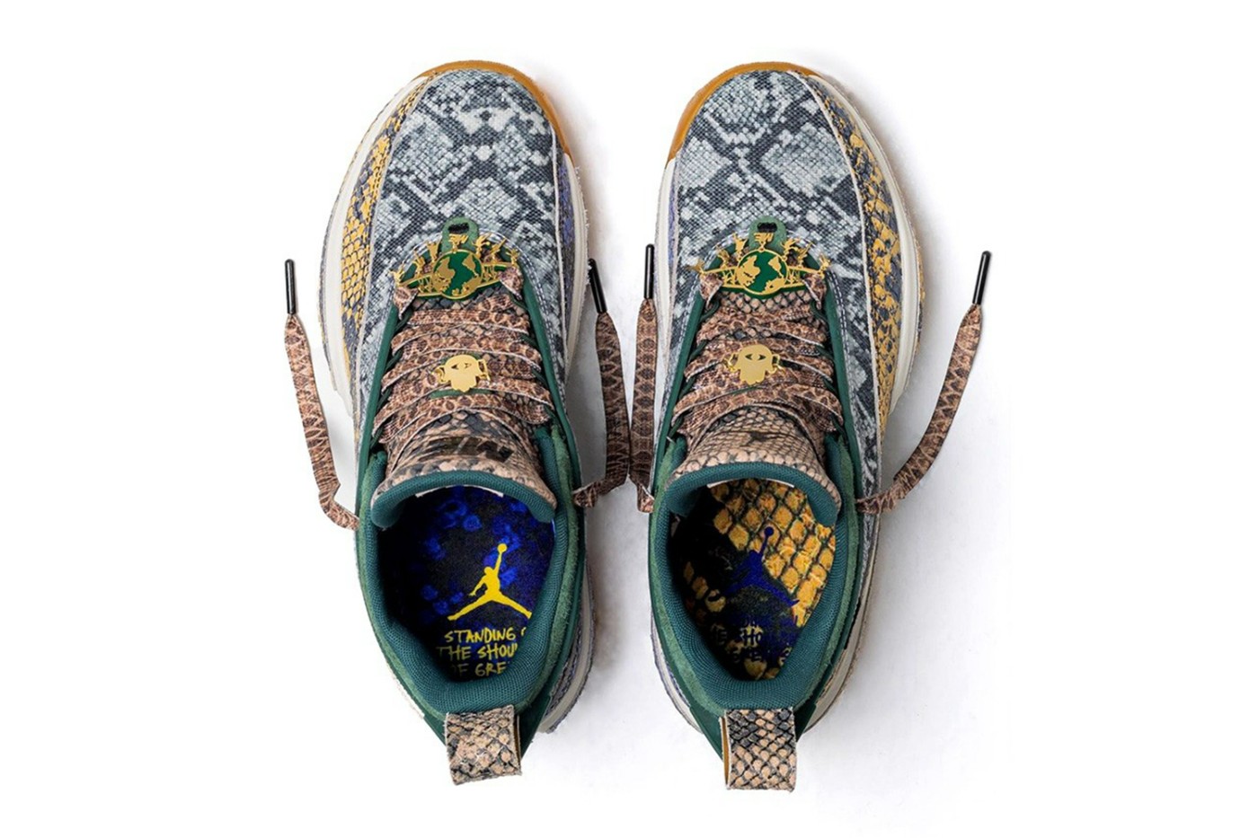 覆盖整个鞋面的蛇纹,搭配鲜艳的撞色,放眼整个 Jordan 系列都是十分夸张的存在。