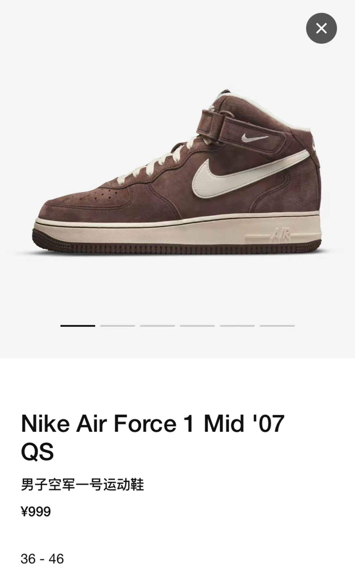 近日,此前曝光过的 Nike Air Force 1 Mid “Chocolate” 终于正式上架 SNKRS App!