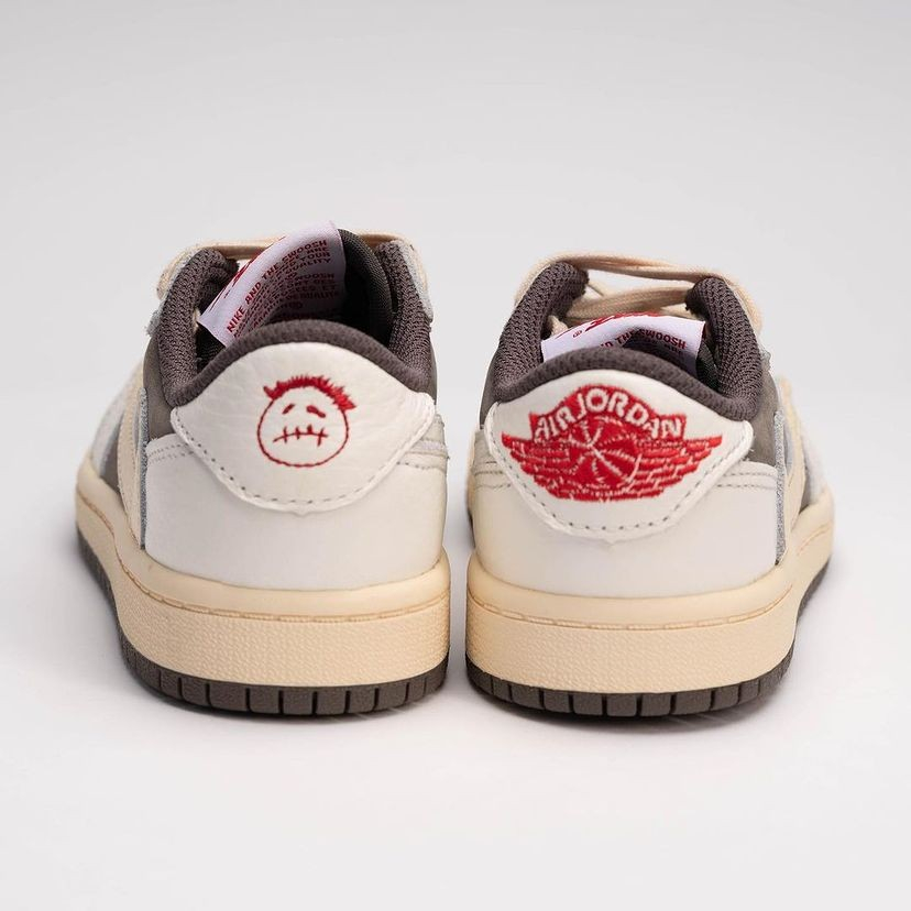 内侧的 Cactus Jack 厂牌字样,后跟处的鬼脸和飞翼 Logo 刺绣,共同彰显联名身份,和辨识度一起拉满的,还有排面!