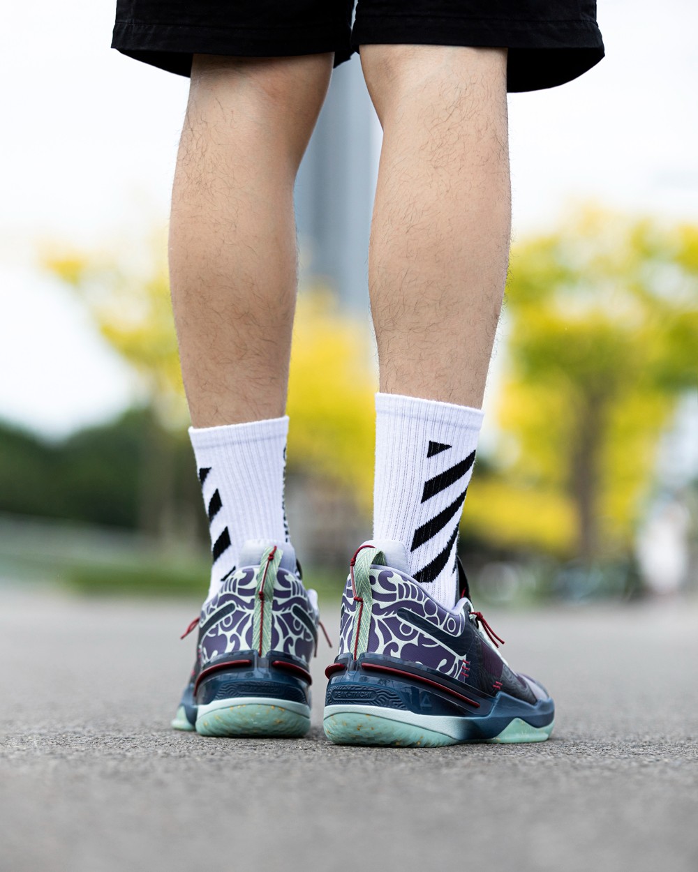 中底前掌采用超级魔弹科技,后掌使用轻量化态极科技,保证实战中的缓震性能。