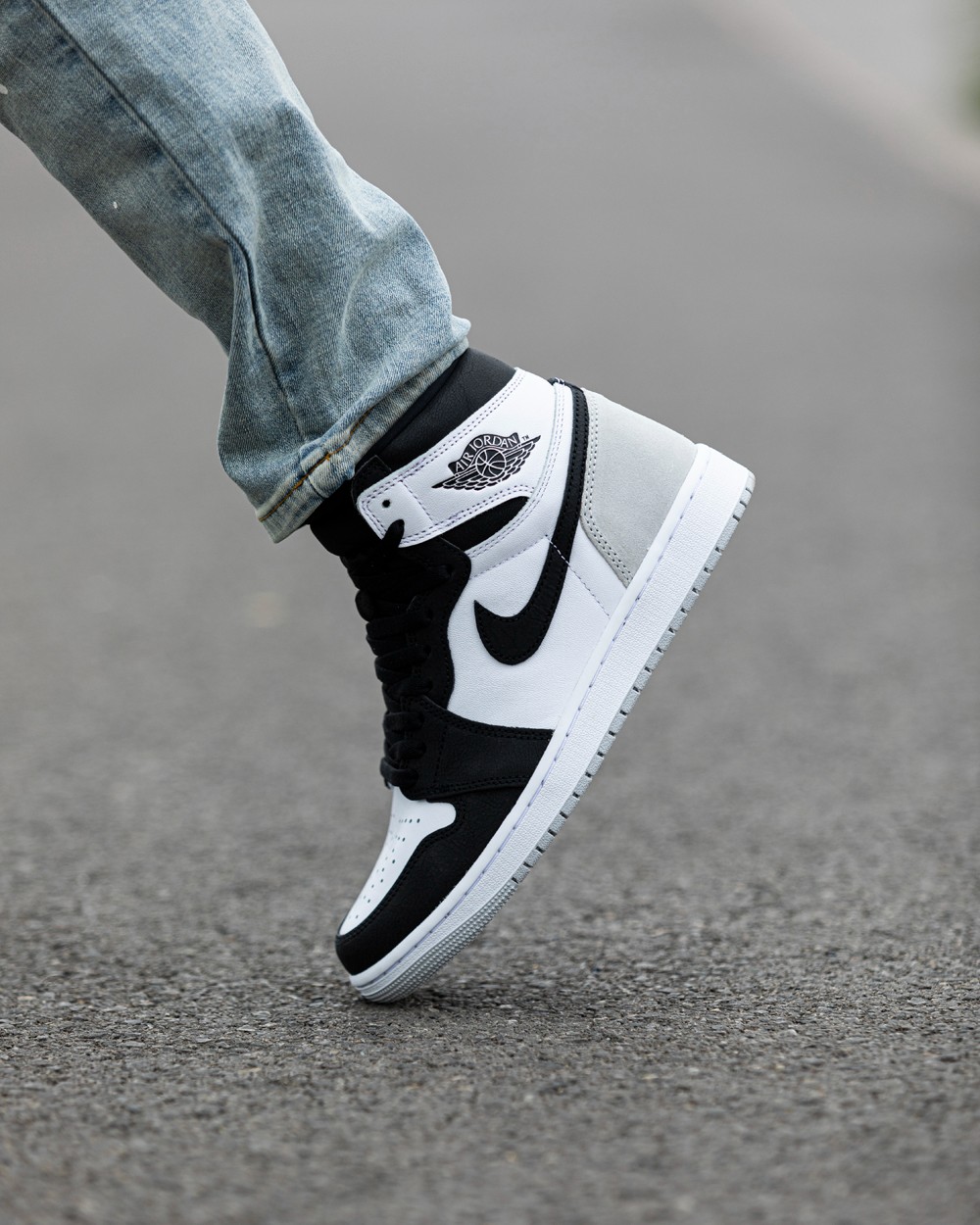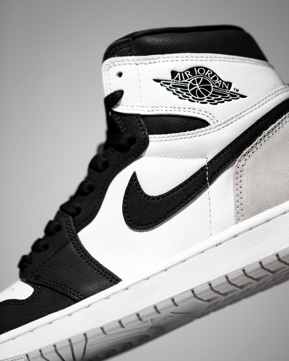整体采用黑、白、灰撞色打造,鞋头部分呈现出「黑脚趾」的设计风格,散发出浓郁 OG 气质。