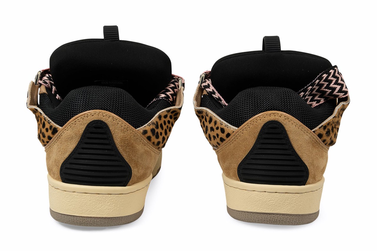 此次联名将推出两款配色,一款为豹纹马毛搭配卡其和黑色麂皮打造鞋面,造型野性十足。