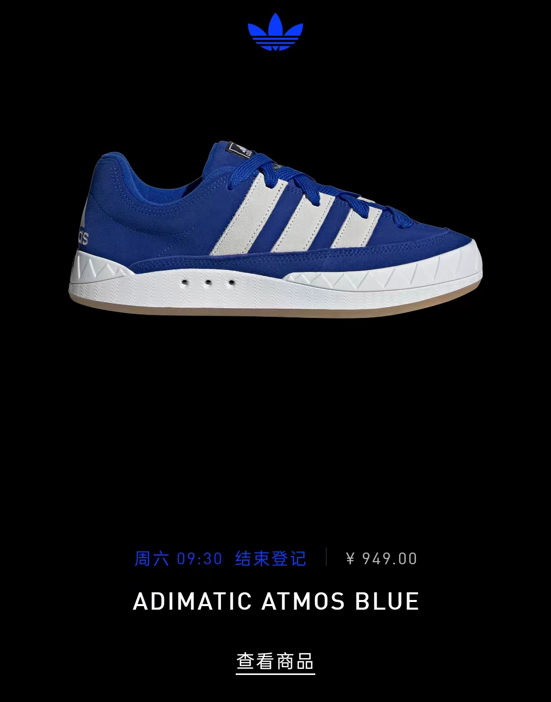 据悉,这双全新 atmos x adidas Originals ADIMATIC 现已上架国区 CONFIRMED APP 并开启抽签登记,截止时间为 6 月 18 日上午 9 点半,将于当天上午 10 点正式开启抽签发售,定价¥949 元。
