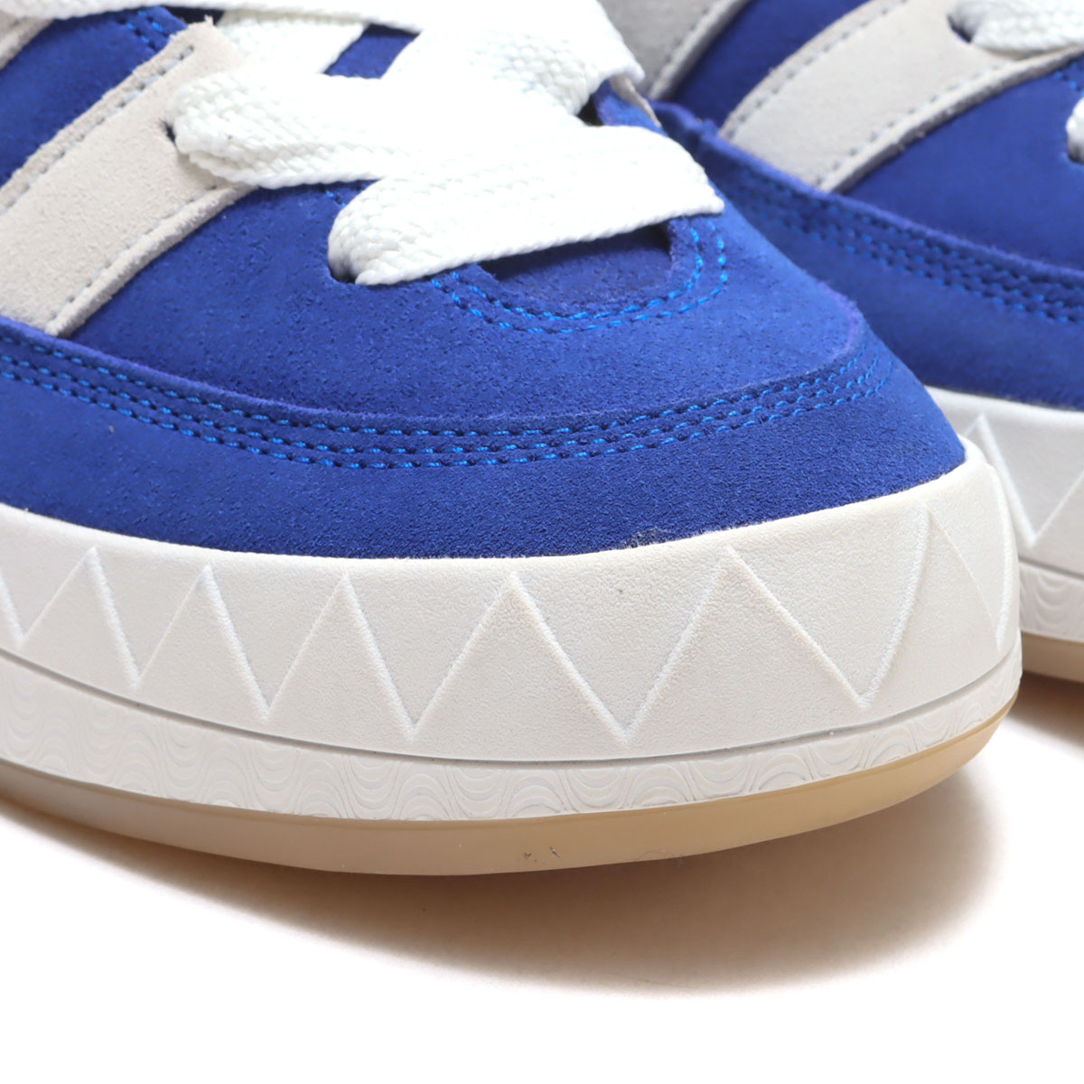 整体鞋型保留了 ADIMATIC 最受玩家欢迎的「鲨鱼面包鞋」造型,并在鞋面注入 atmos 标志性的蓝色。
