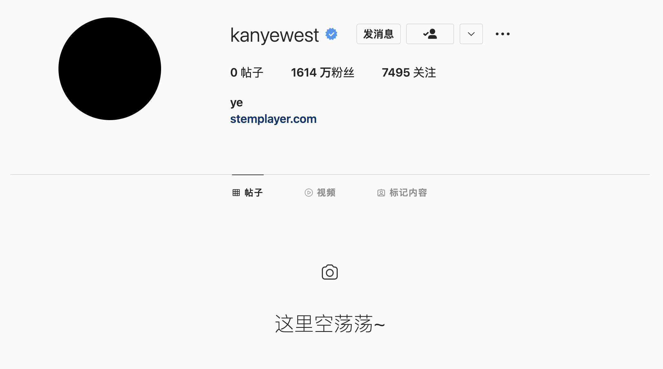 侃爷在网络上向来神龙见首不见尾,Ins 账号一直是几乎清空的状态。