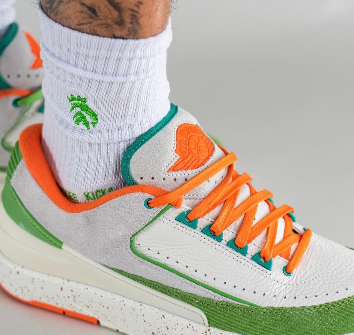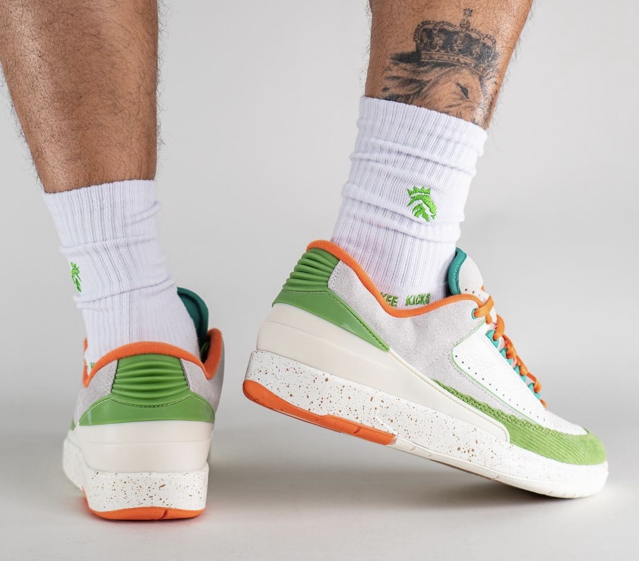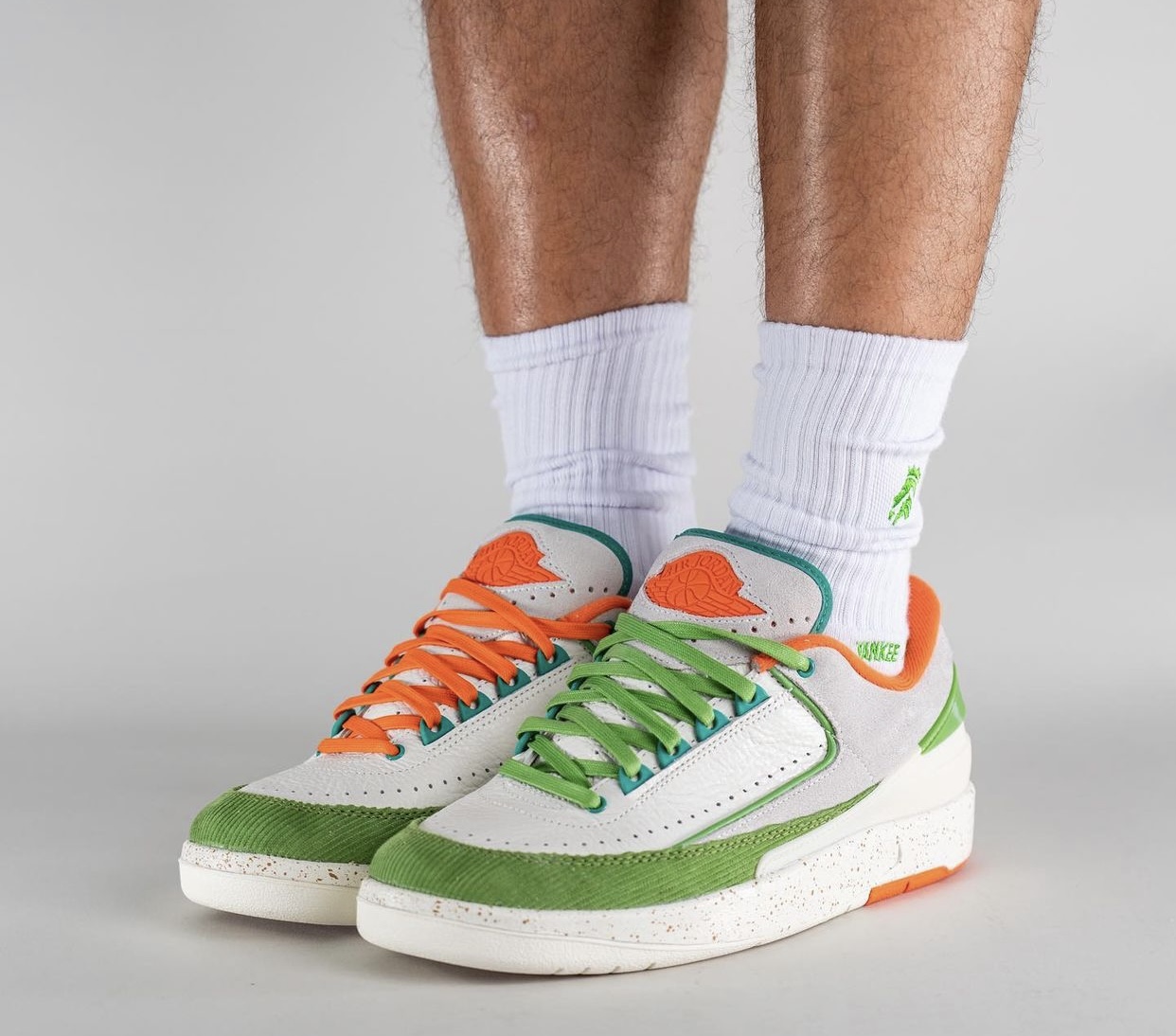 整双鞋采用 Air Jordan 2 Low 作为设计蓝本,低帮的造型避免了较为臃肿的尴尬。