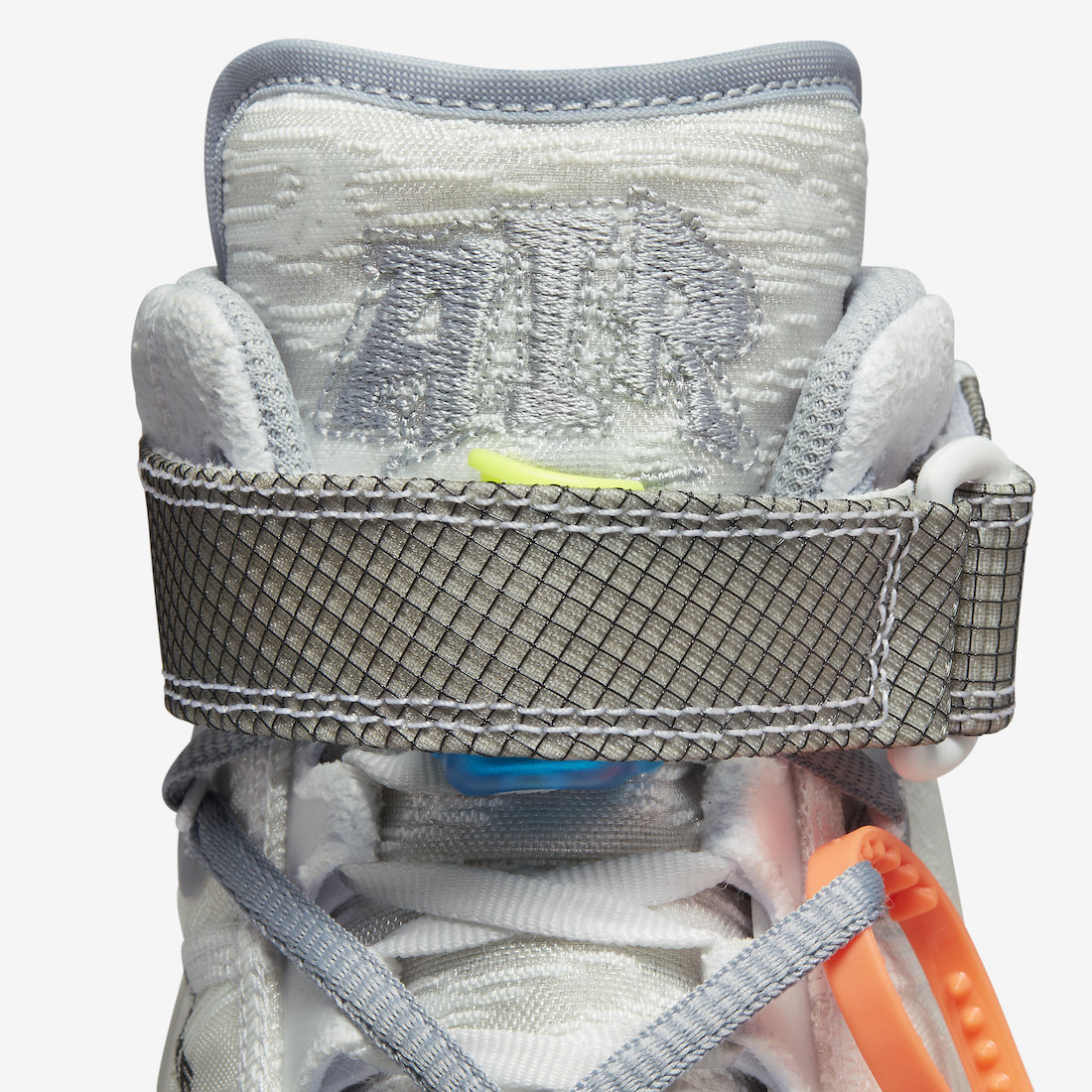 织物鞋面、尼龙魔术贴、透明 Swoosh、登山绳元素及热熔补强等等,都融入到本应简约示人的 Air Force 1 之上,释放出强烈的个人风格与视觉冲击。