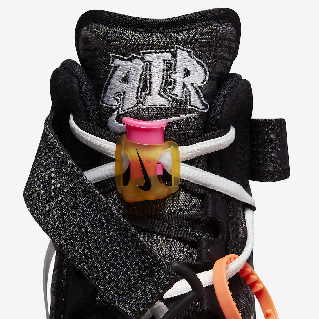 熟悉的防调包扣和内侧 OFF-WHITE 字体依旧保留,鞋舌顶端还额外加入弹性锁扣。