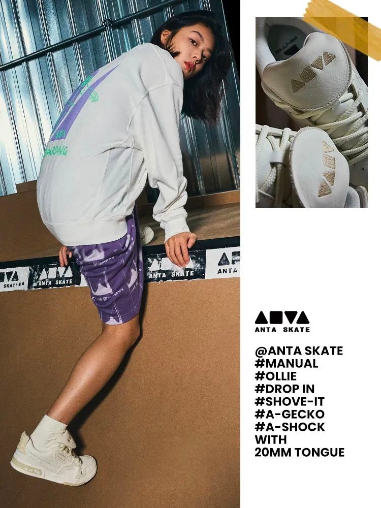 独具一格外翻鞋舌与经典滑板鞋轮廓相呼应,上脚既散发出街头的复古气质,又蕴含安踏独具匠心的设计语言。