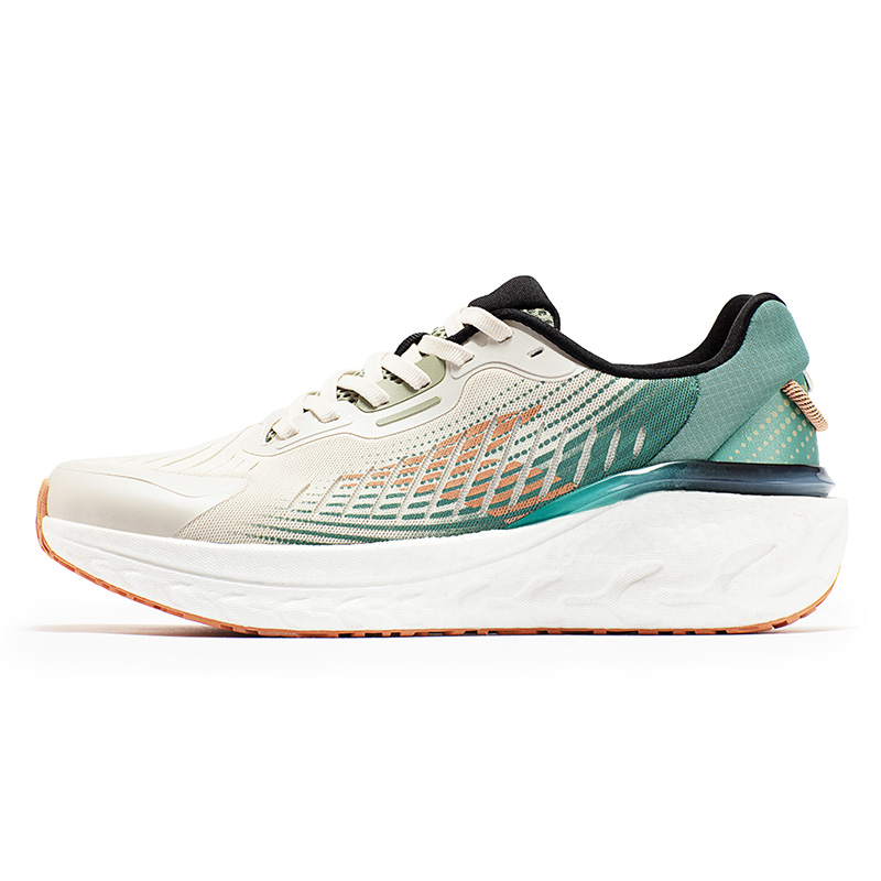 核心科技来自于中底全掌厚脂肪族 ETPU 中底,厚度达到 4.5 厘米,回弹率高达 65%,抗疲劳耐久性能优越 ,满足大体重跑者长距离训练需求。