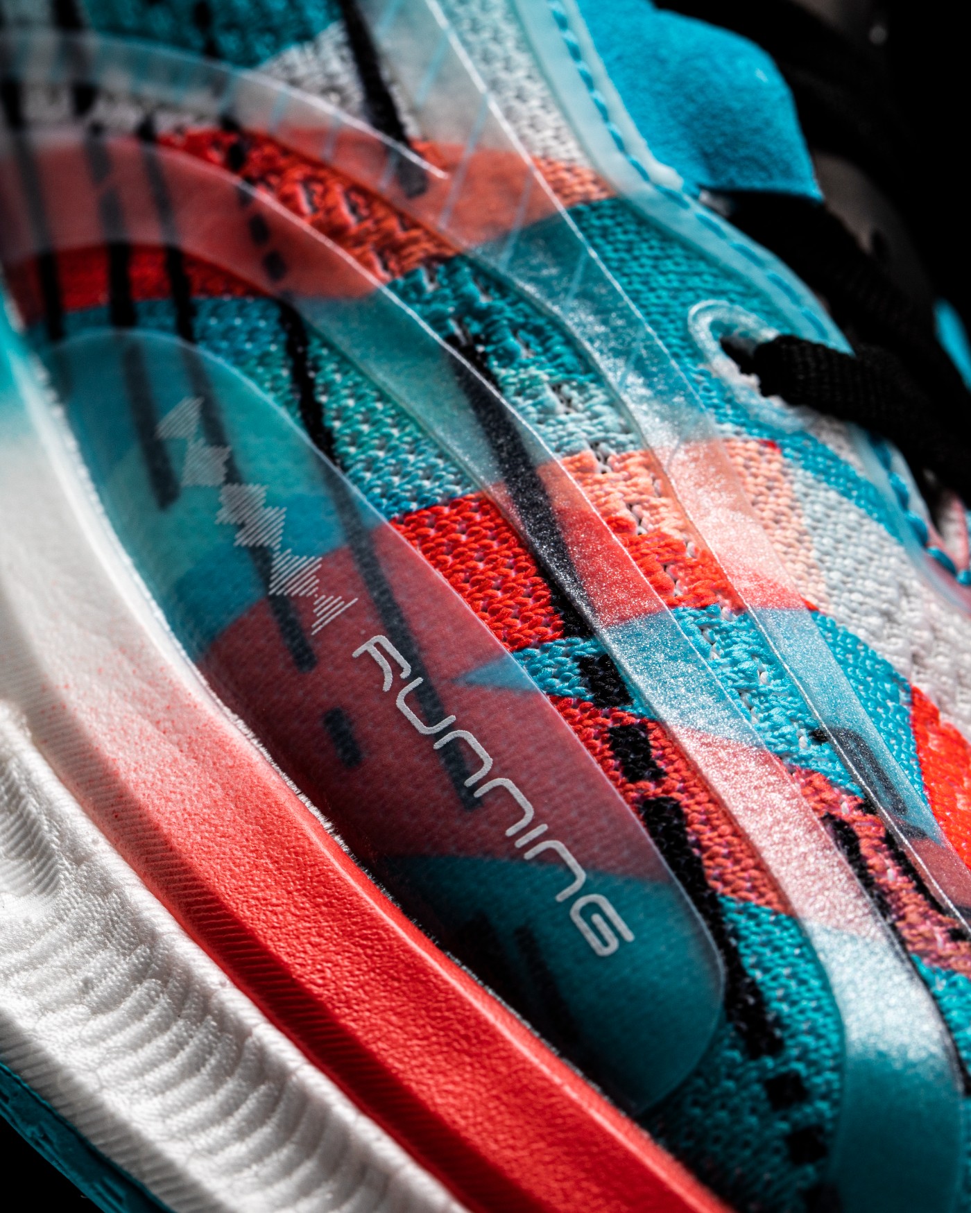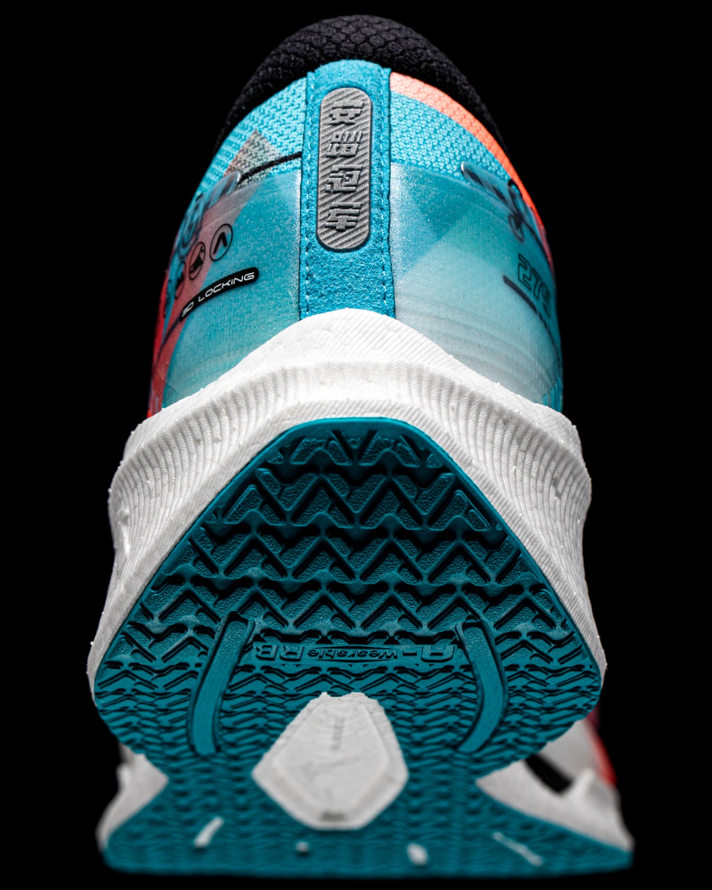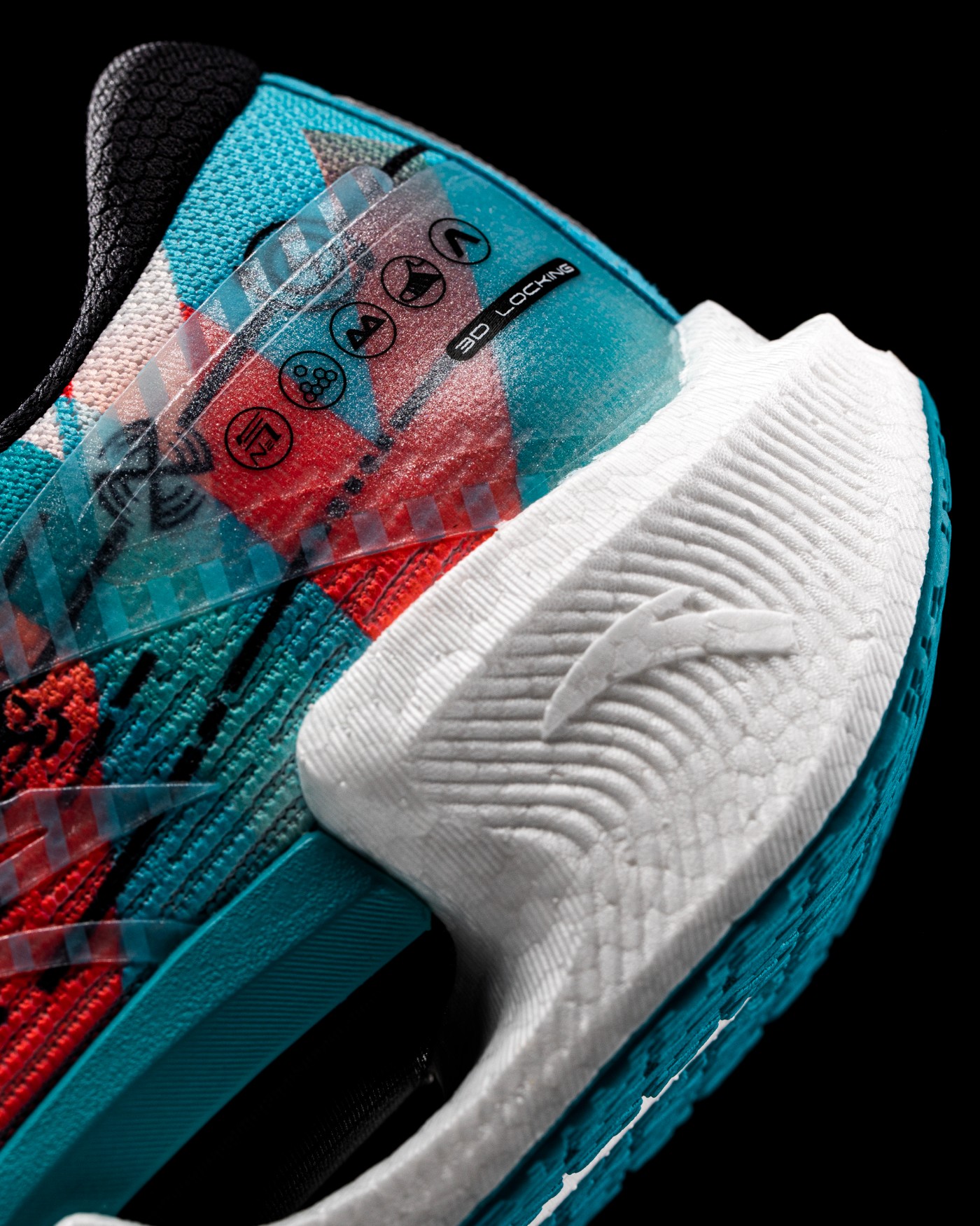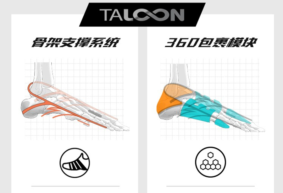 中腰双侧织带从脚背延伸至脚底,搭配前掌额外加固模块以及后跟独立港宝,带来全方位的 3D 锁定性能。