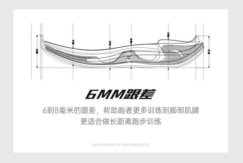 前后掌 6 毫米的跟差上脚不会过分前倾,良好的支撑和稳定性即便是常规跑法也能轻松驾驭。