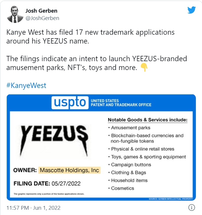 似乎表明有计划打造全新「YEEZUS」品牌的元宇宙虚拟乐园,以及相关的数字藏品。