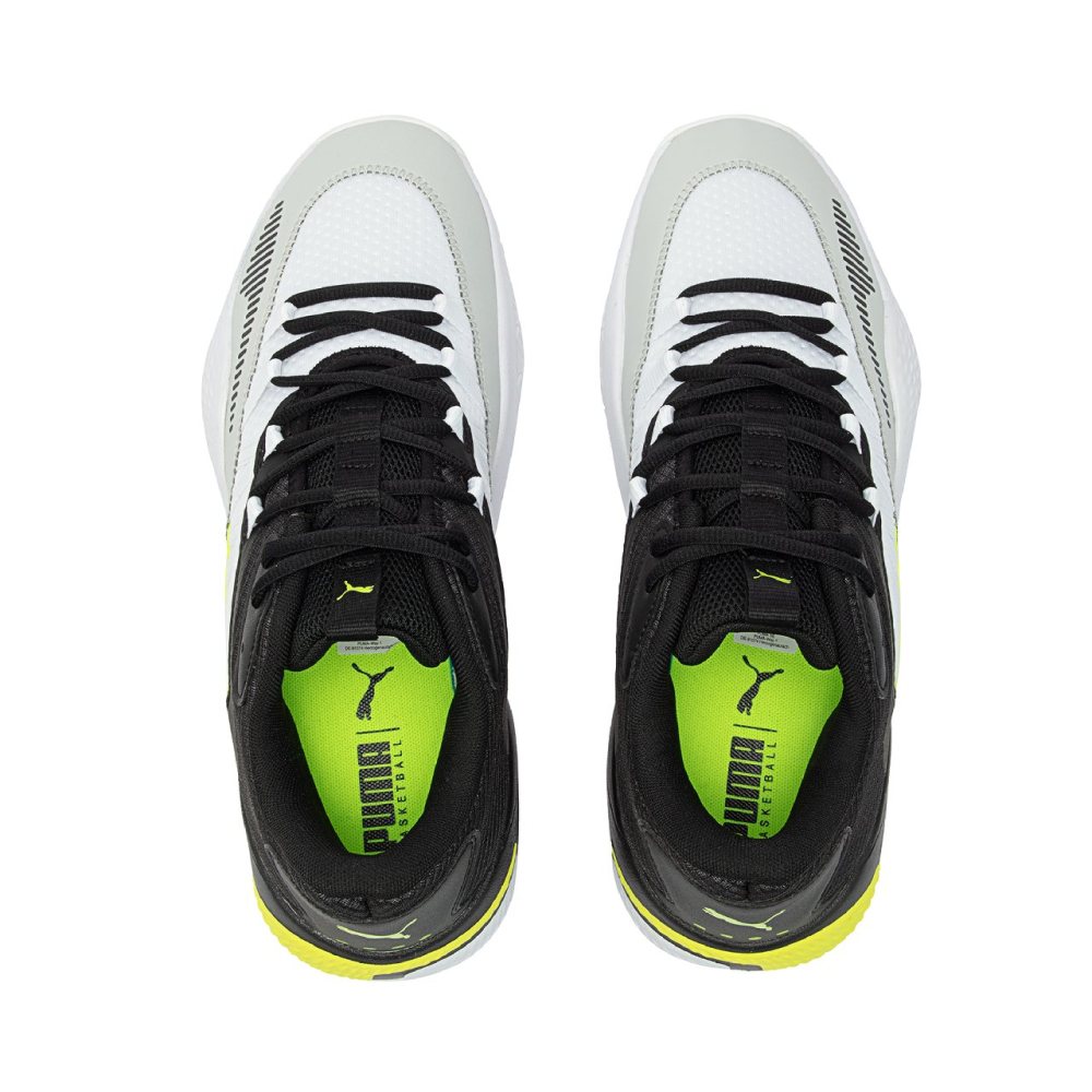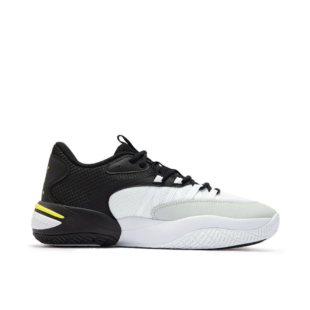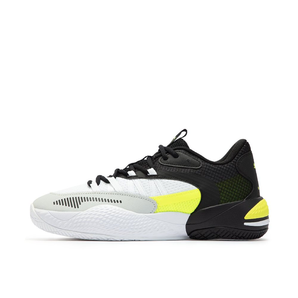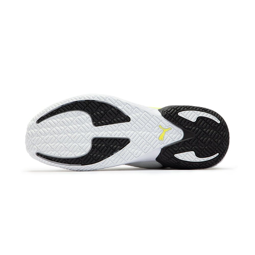 外底采用 PUMA 高耐磨粘性橡胶的全覆盖橡胶打造,增强耐用性和抓地力,不论变向切入或定点跳投都能出色胜任。