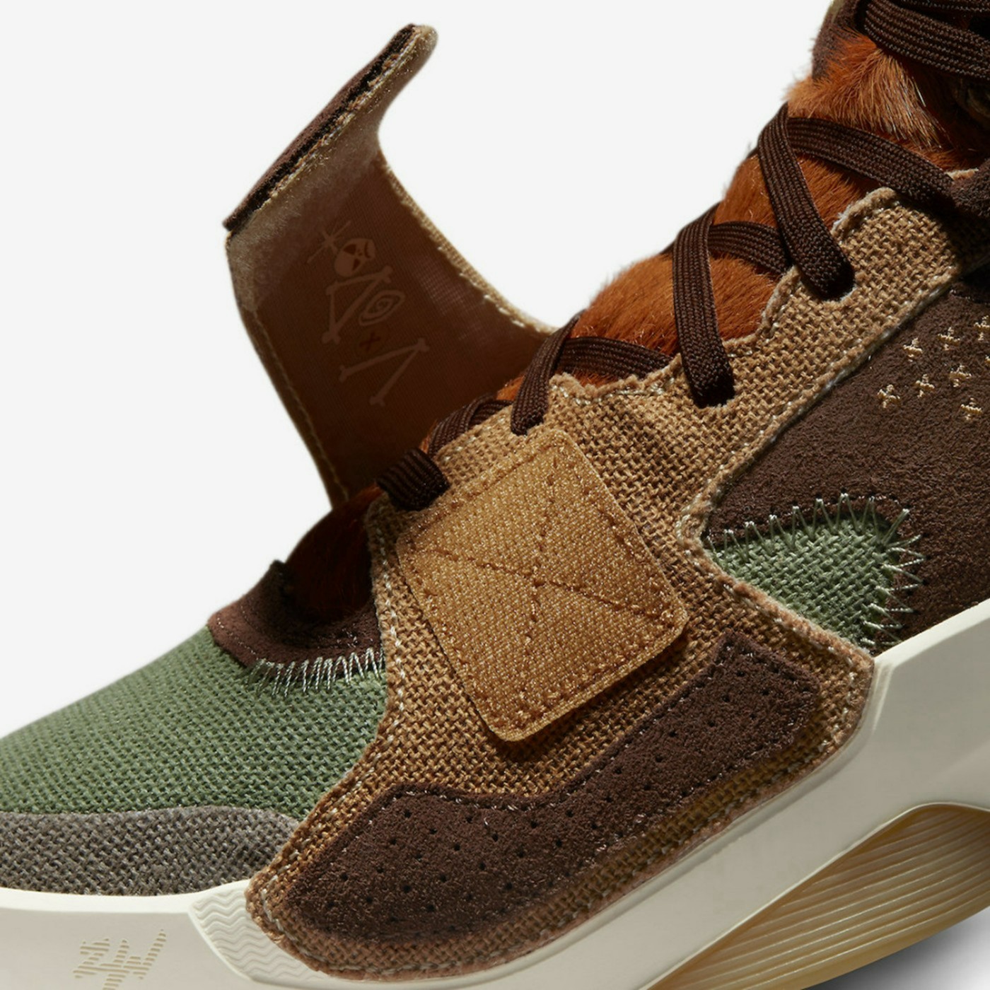 由于整双鞋的灵感来自于非洲和南美地区的巫毒教,所以整体配色风格颇有巫毒娃娃的味道。