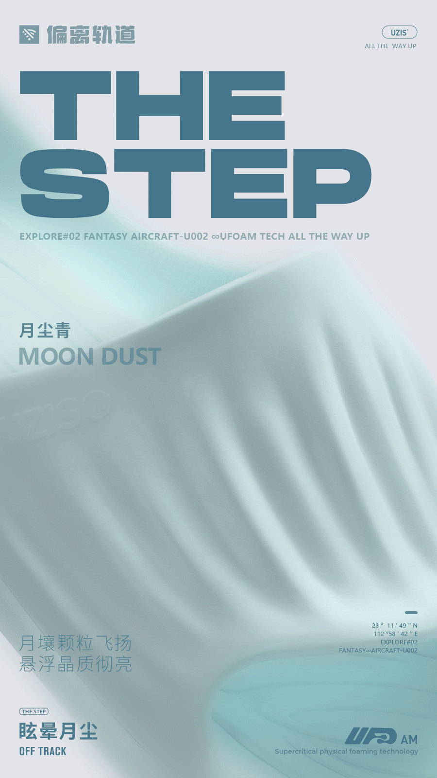 脚底纹路取材于 “阿姆斯特朗第一次登月时留下的脚印”,也呼应了「THE STEP」名称。
