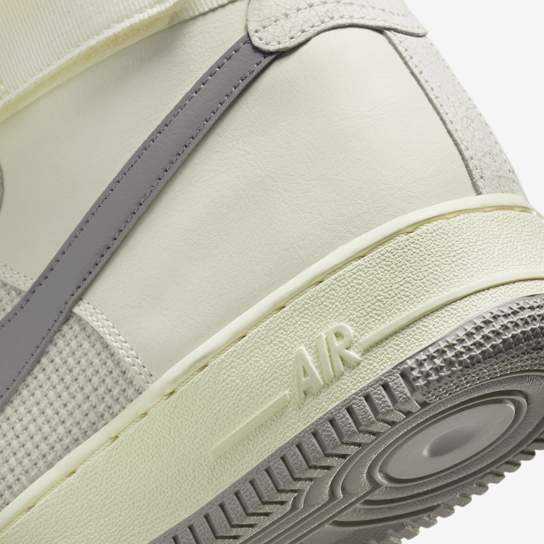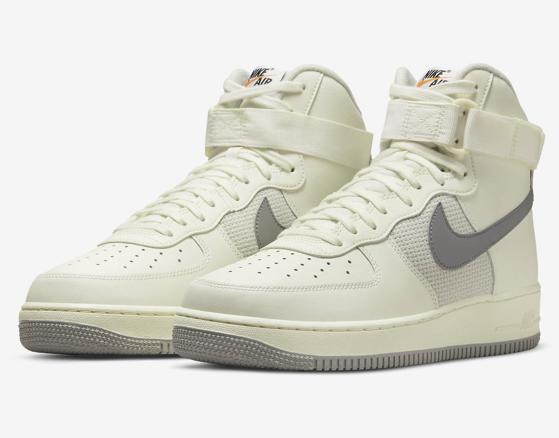 采用高帮鞋型,以米黄色主体搭配灰色,还原最经典的元年高帮灰白配色氧化后的效果。