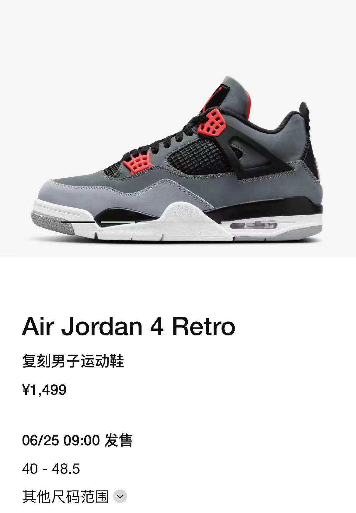 明天即将发售的「红外线」Air Jordan 4 同样大有来头!