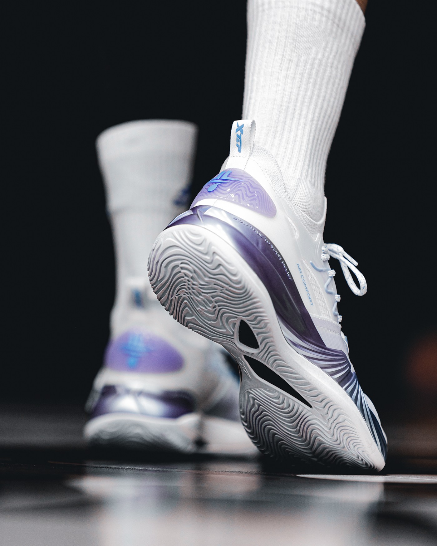 核心中底科技搭载特步特爆回弹科技,高达 70%+ 的超高回弹效果,作为一款后卫鞋保证了启动以及落地的缓震。