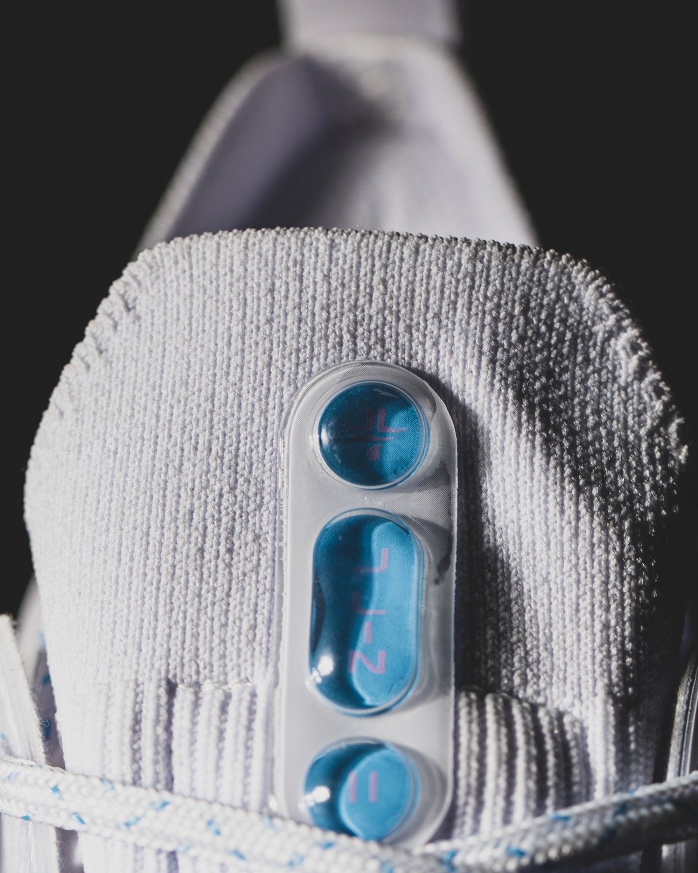 首先鞋面采用一体飞织鞋面,具备强包裹、强透气效果,搭配上鞋带动态绑缚系统,带来更佳的鞋面穿着体验。