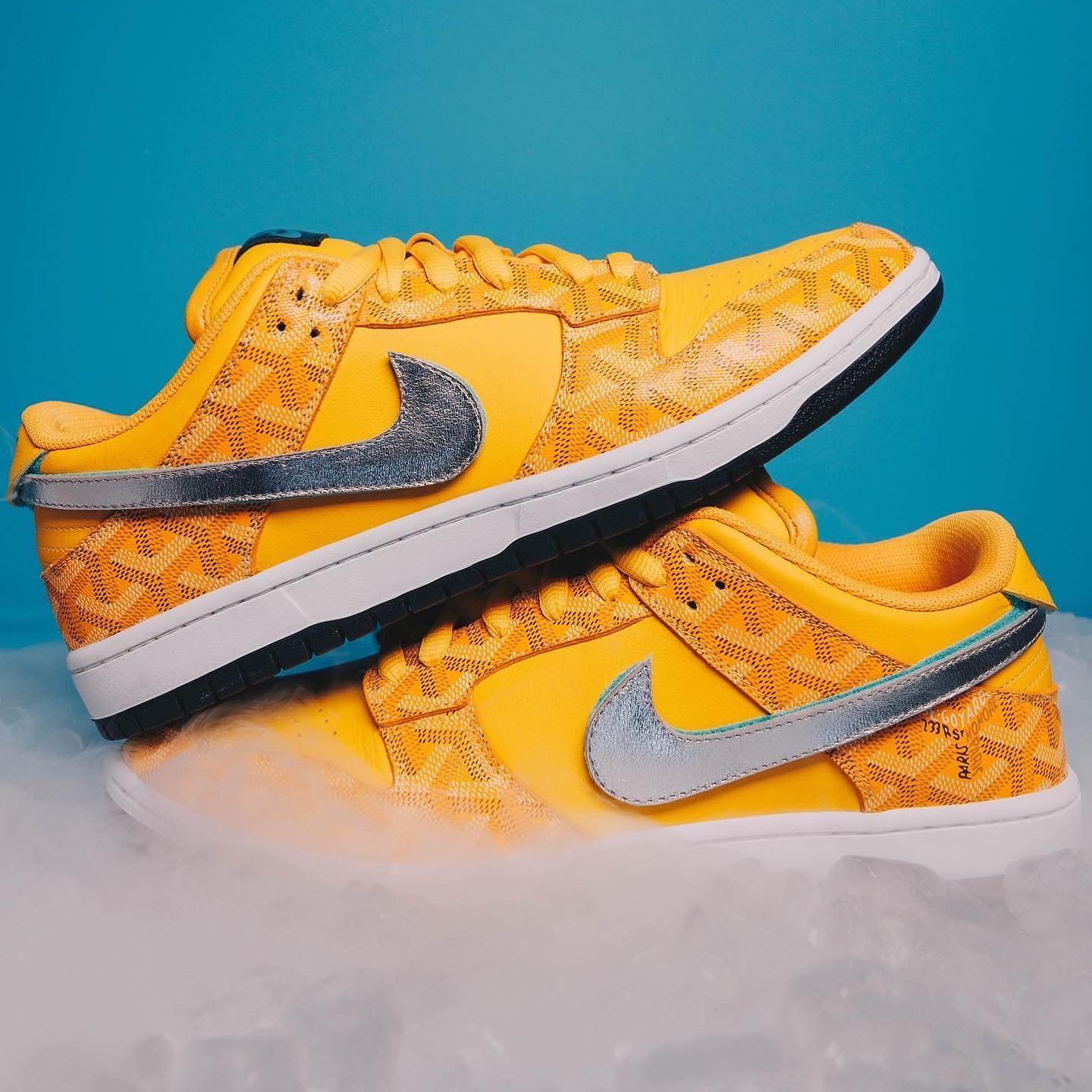 其中一双延续了「钻石」Dunk SB 官方设计方案,另外两双分别才用了白色和金丝雀黄色鞋面。