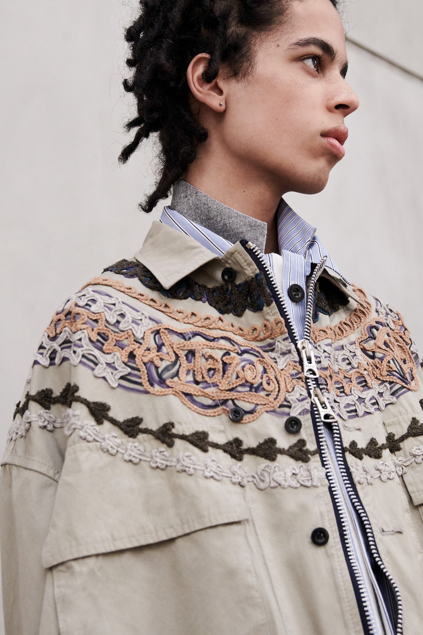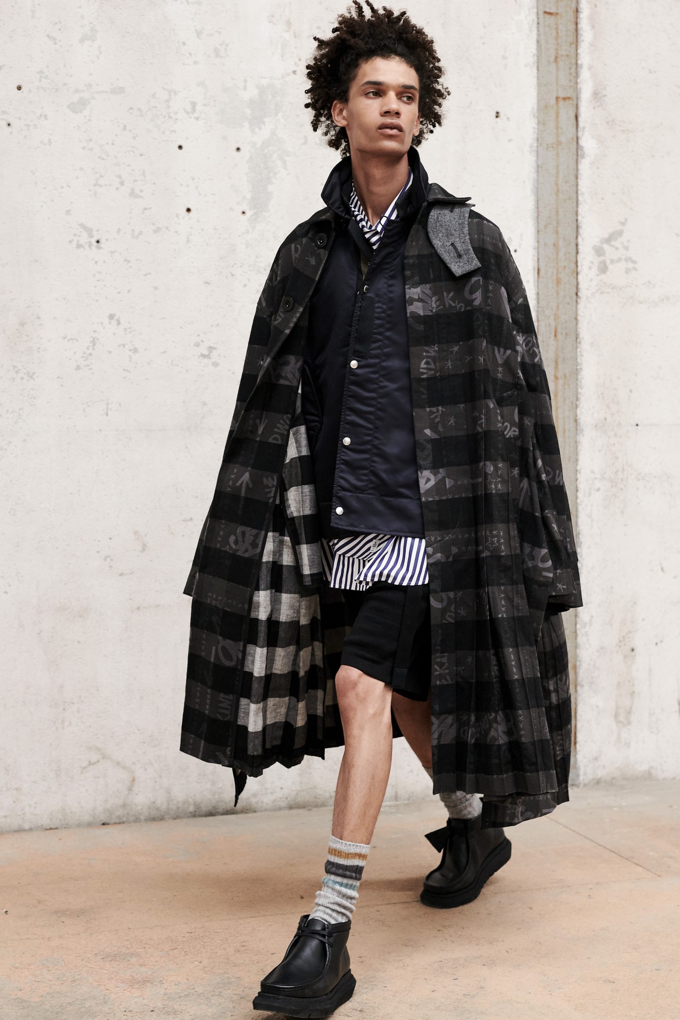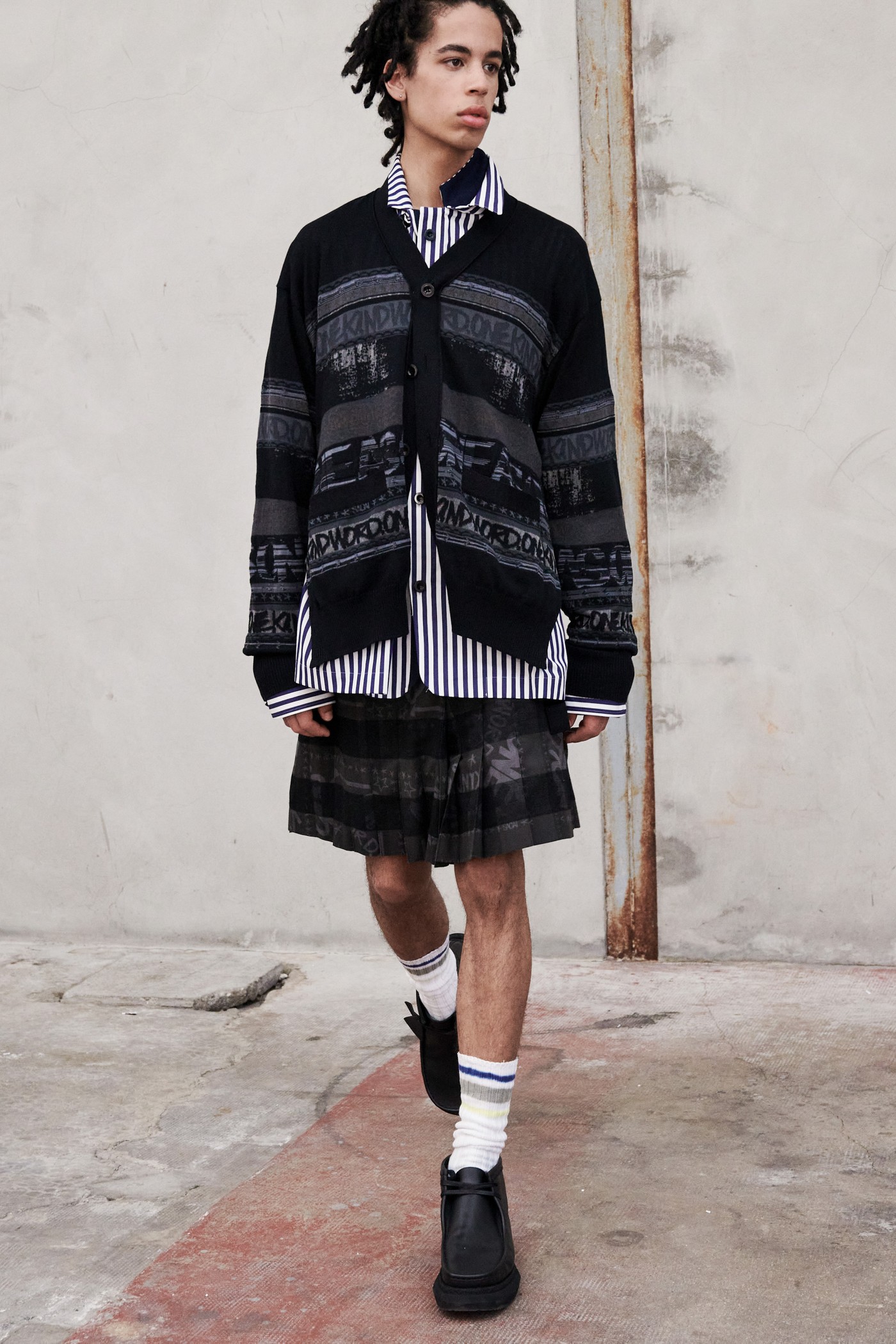 鞋款方面,棕色调 sacai x Clarks Wallabee 袋鼠鞋十分契合整套穿搭风格,可以说 sacai 每一季都能营造出不一样的视觉氛围。